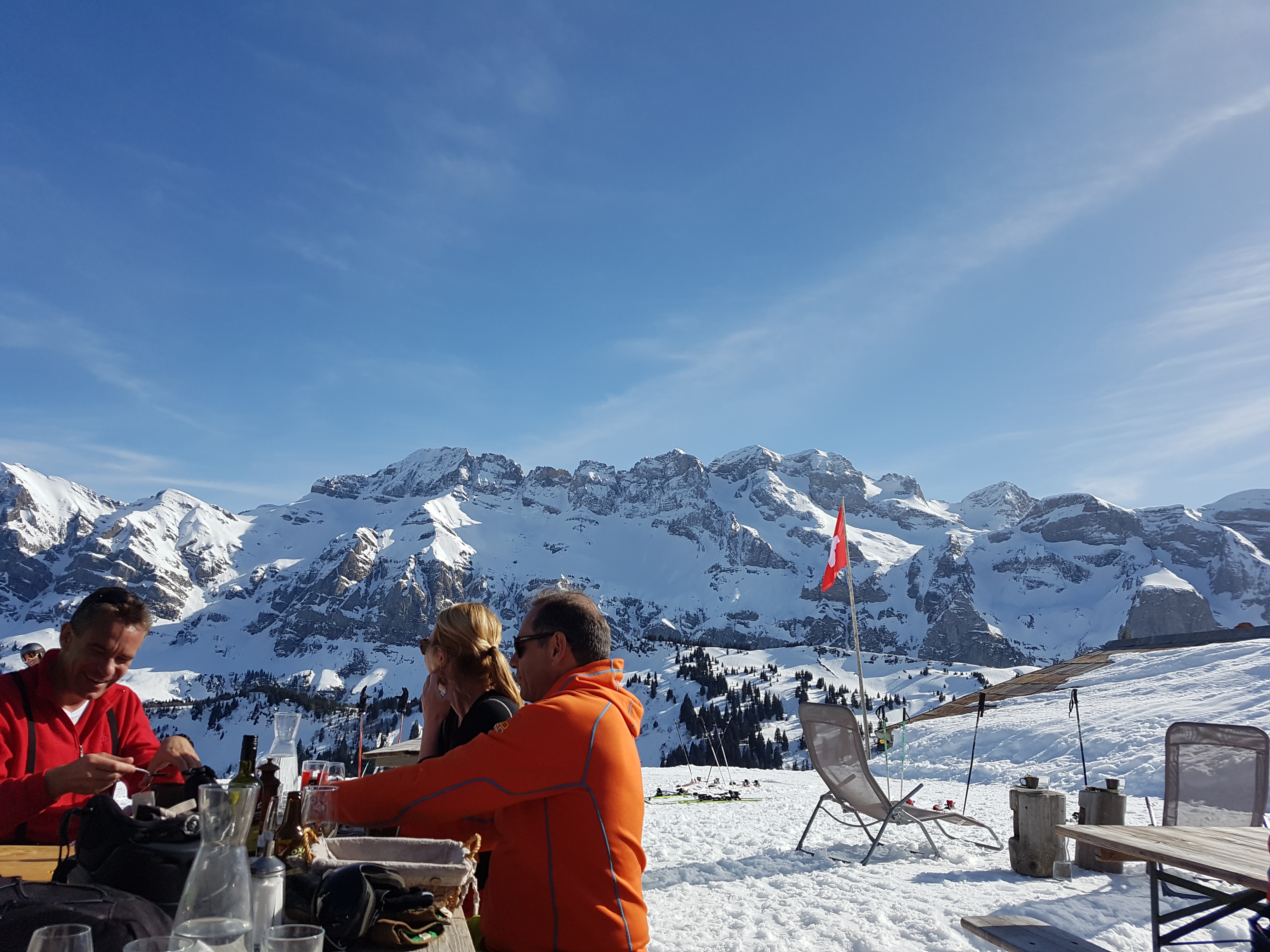 Im Winter sind Skifahrer herzlich willkommen, um die Aussicht von der Terrasse aus zu genießen oder eine Mahlzeit am Kaminfeuer zu genießen und dabei die Produkte zu entdecken, die im Sommer auf der Alm hergestellt werden. Im Sommer begrüßen wir Sie auf unserer Alm, die im Herzen der Schweizer Alpen liegt, um Ihnen einen Einblick in unseren Alltag zu geben: das Melken der Kühe und Ziegen sowie die Herstellung unserer verschiedenen Käsesorten.