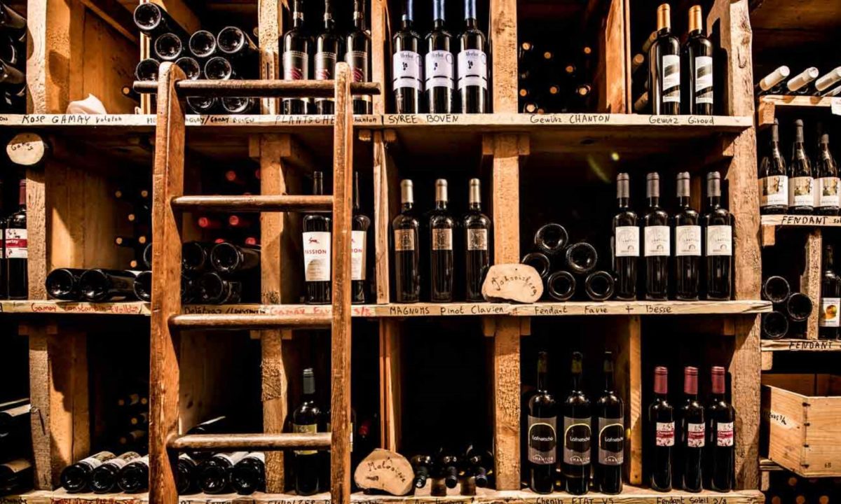 Der reisige Weinkeller ermöglicht Ihnen eine kleine Reise durch das Weinland Wallis von Evouettes hinauf bis in die Visperterminen (47 Rebsorten, 200 Weine, 30 Winzer).