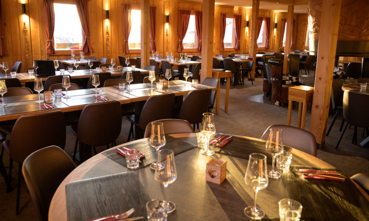 Auf der Terrasse empfängt Sie ein atemberaubender Ausblick auf die Dents du Midi, die Dents Blanches und den Ruan-Gletscher. Eine außergewöhnliche Atmosphäre, um die köstlichen Gerichte unseres Küchenchefs in der Sonne oder um den gemütlichen, offenen Rundkamin zu genießen.