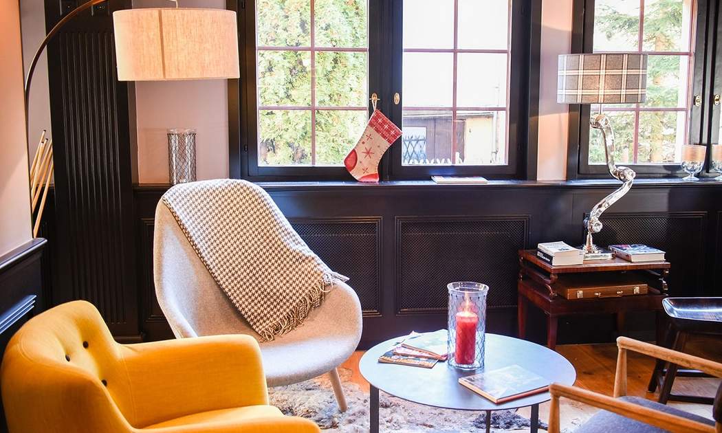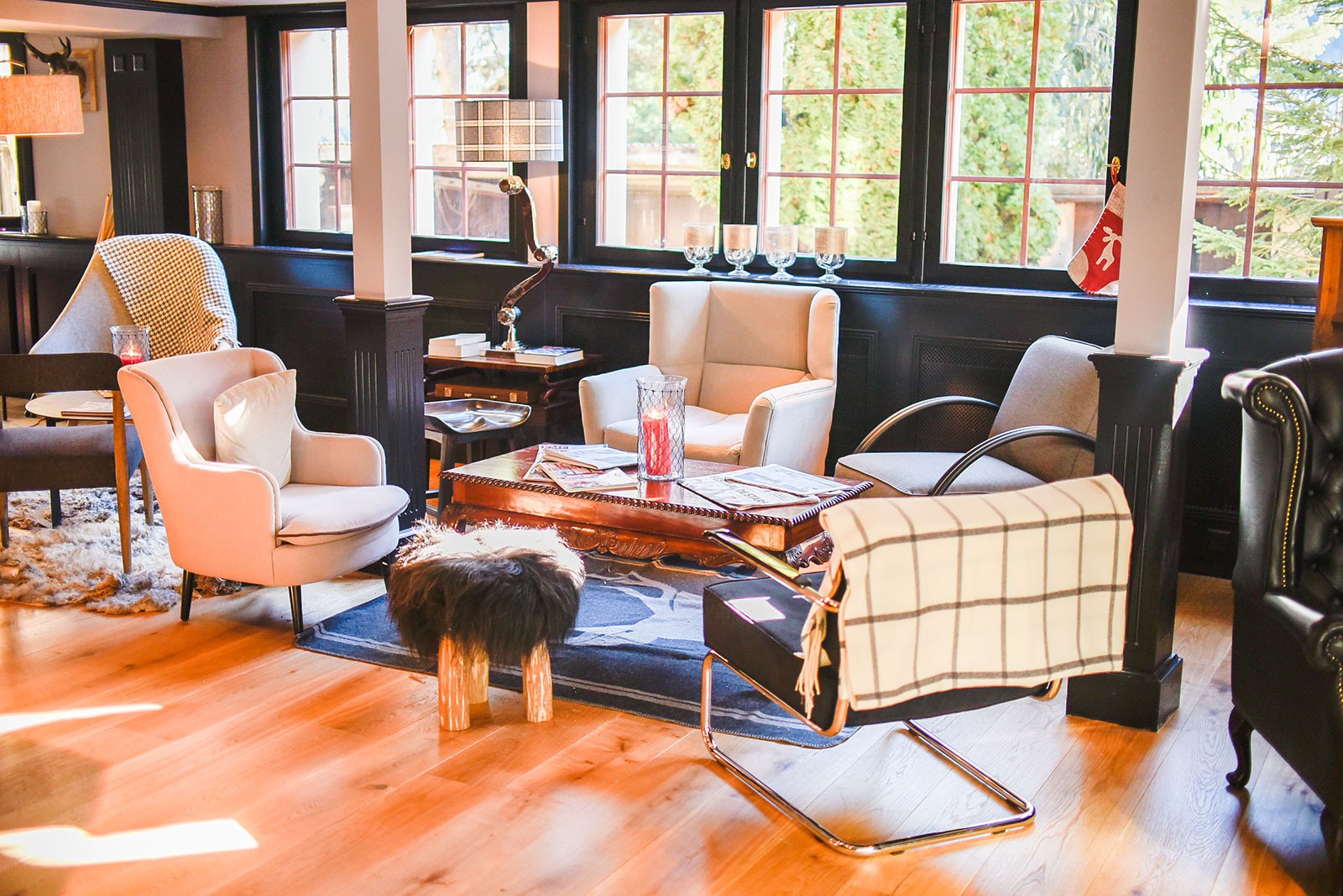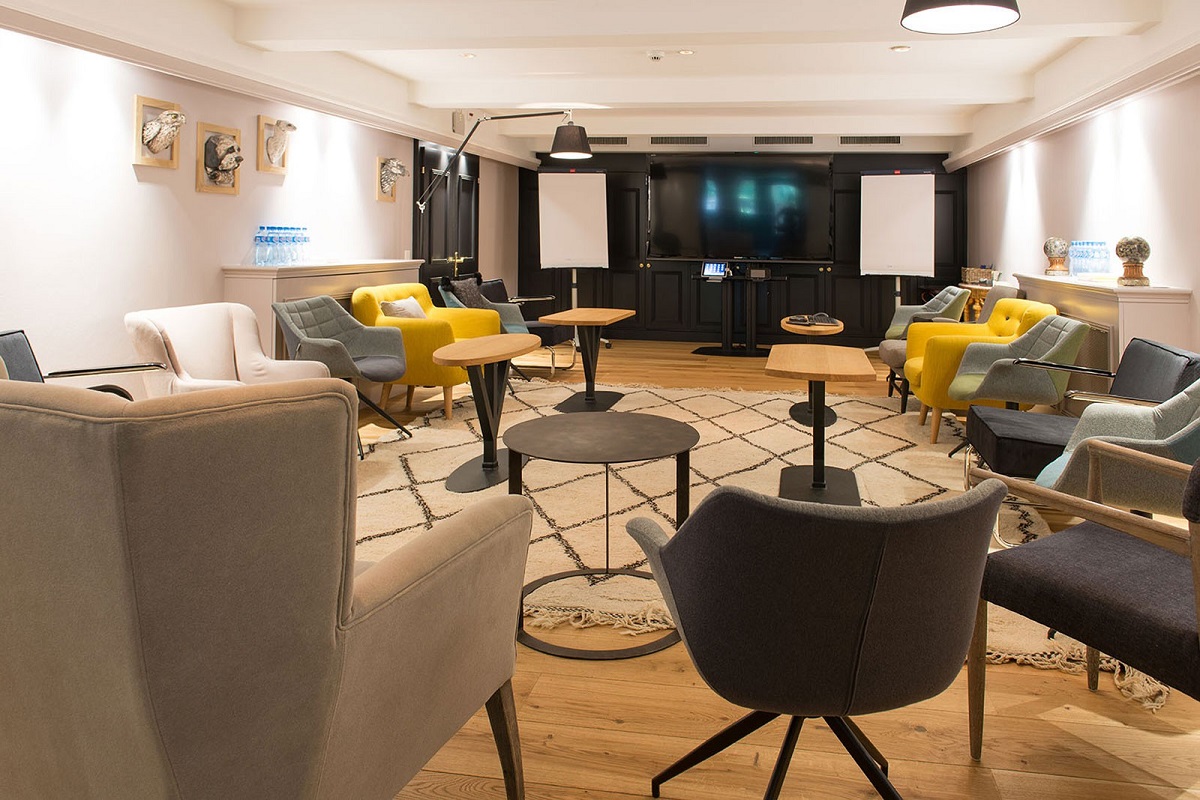 Ein idealer Ort für kleinere Seminare und Firmenausflüge, bietet dieses charmante Chalet einen informellen Besprechungsraum, ausgestattet mit interaktiven Touchscreens und bequemen Sesseln.