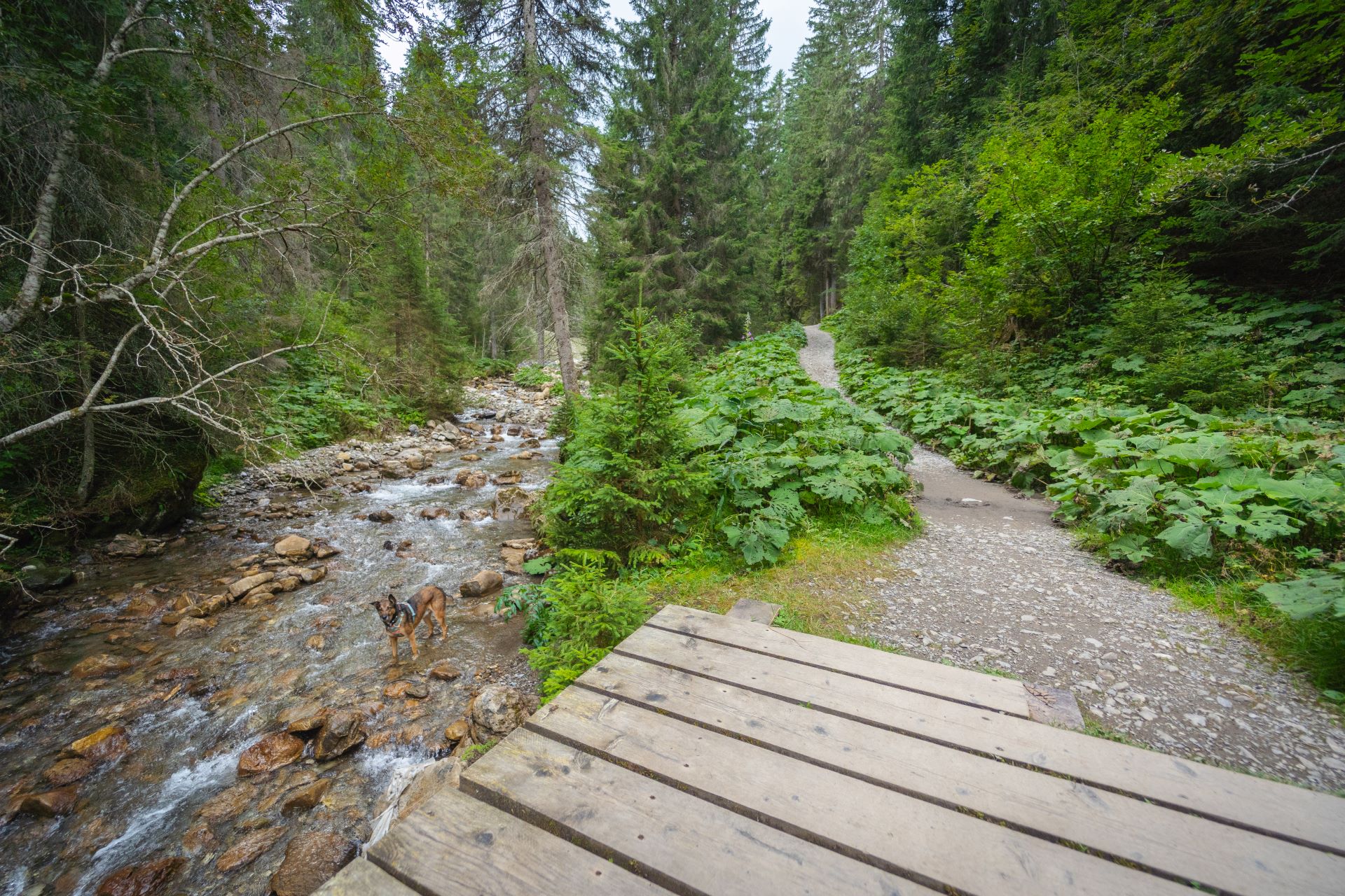 Dieser Schneeschuhweg führt Sie über eine Dutzend Holzbrücken entlang dem Fluss „La Vièze“. Sie passieren die eisenhaltige rotfarbige Wasserquelle „Eau Rouge“.