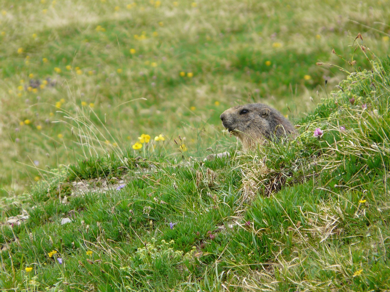 Eine Murmeltierfamilie hat sich seit einigen Jahren in unserem Garten niedergelassen. Vielleicht haben Sie Glück und sehen, wie sie ihre Nasenspitze zeigen oder sich in der Sonne sonnen?