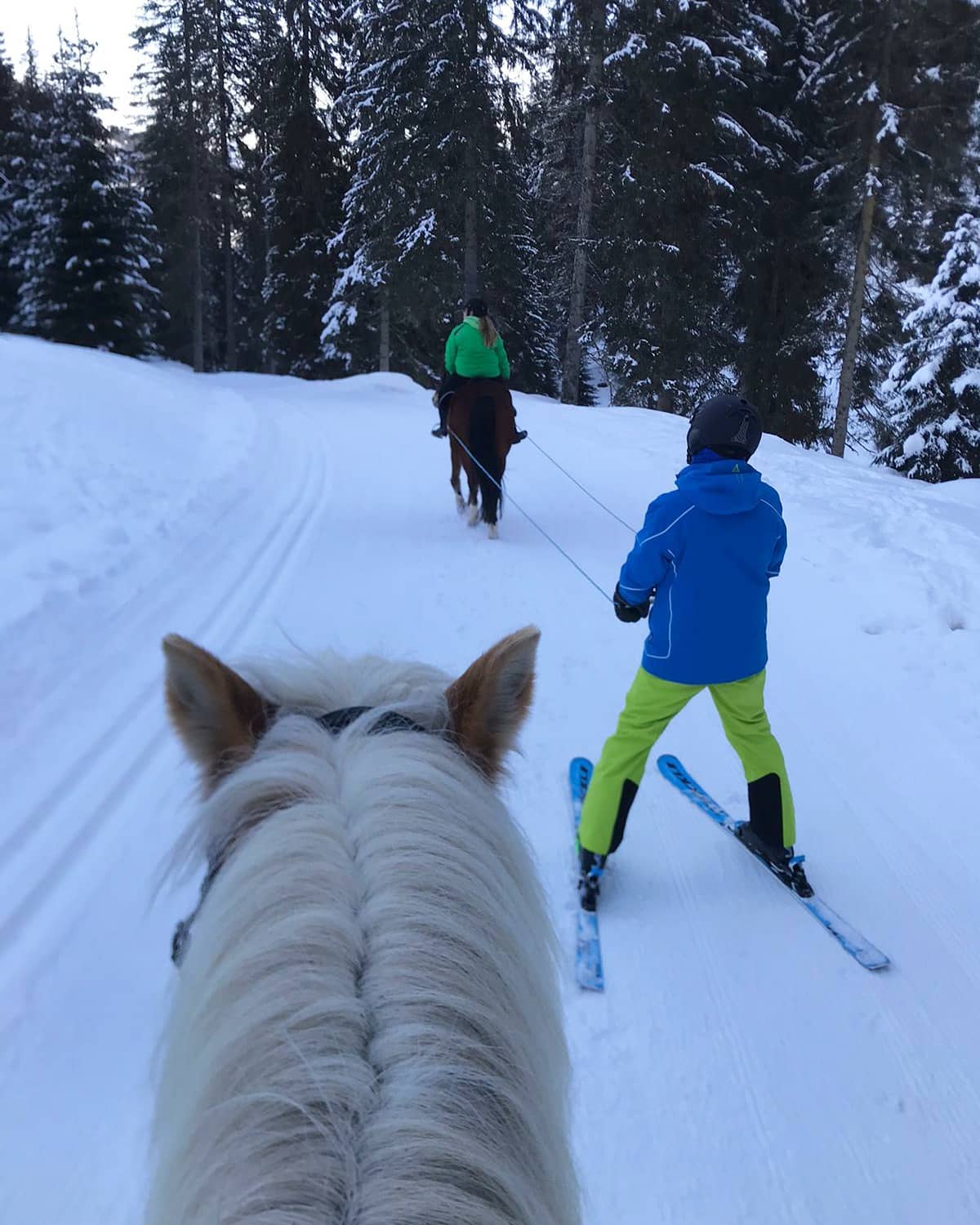 Eine von unseren Ahnen übertragende Disziplin, bei der wir uns auf den Skis zusammen mit einem Begleiter von einem Pferd ziehen lassen. Ski Joëring ist