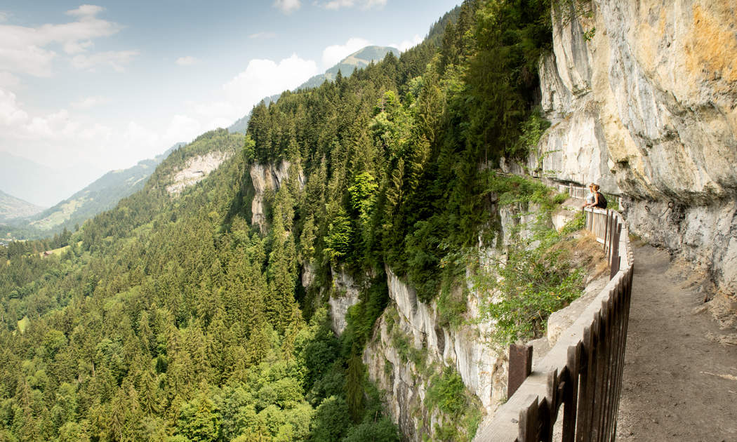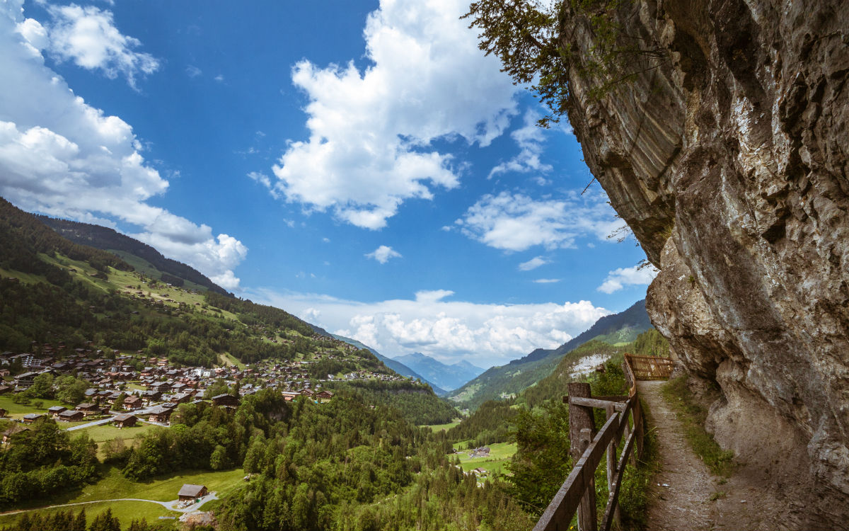 Die Galerie Défago ist ein Spaziergang mit eine schöne Aussicht auf Champéry.