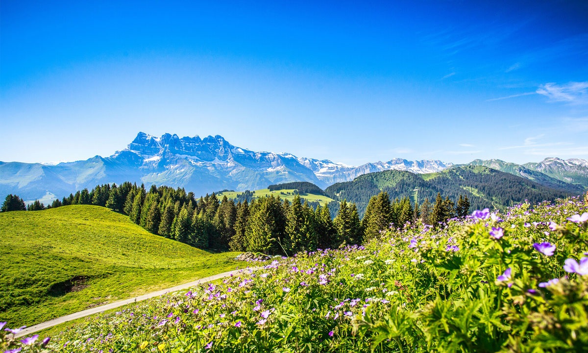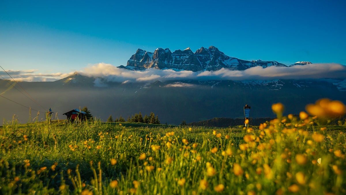 Die mythischen Gebirgszüge der Region und die gesamte Domäne von Portes du Soleil, die Dents du Midi, bestehen aus 7 Gipfeln über 3.000 Metern, die von der Haute-Cime (3.257 Meter) dominiert werden.