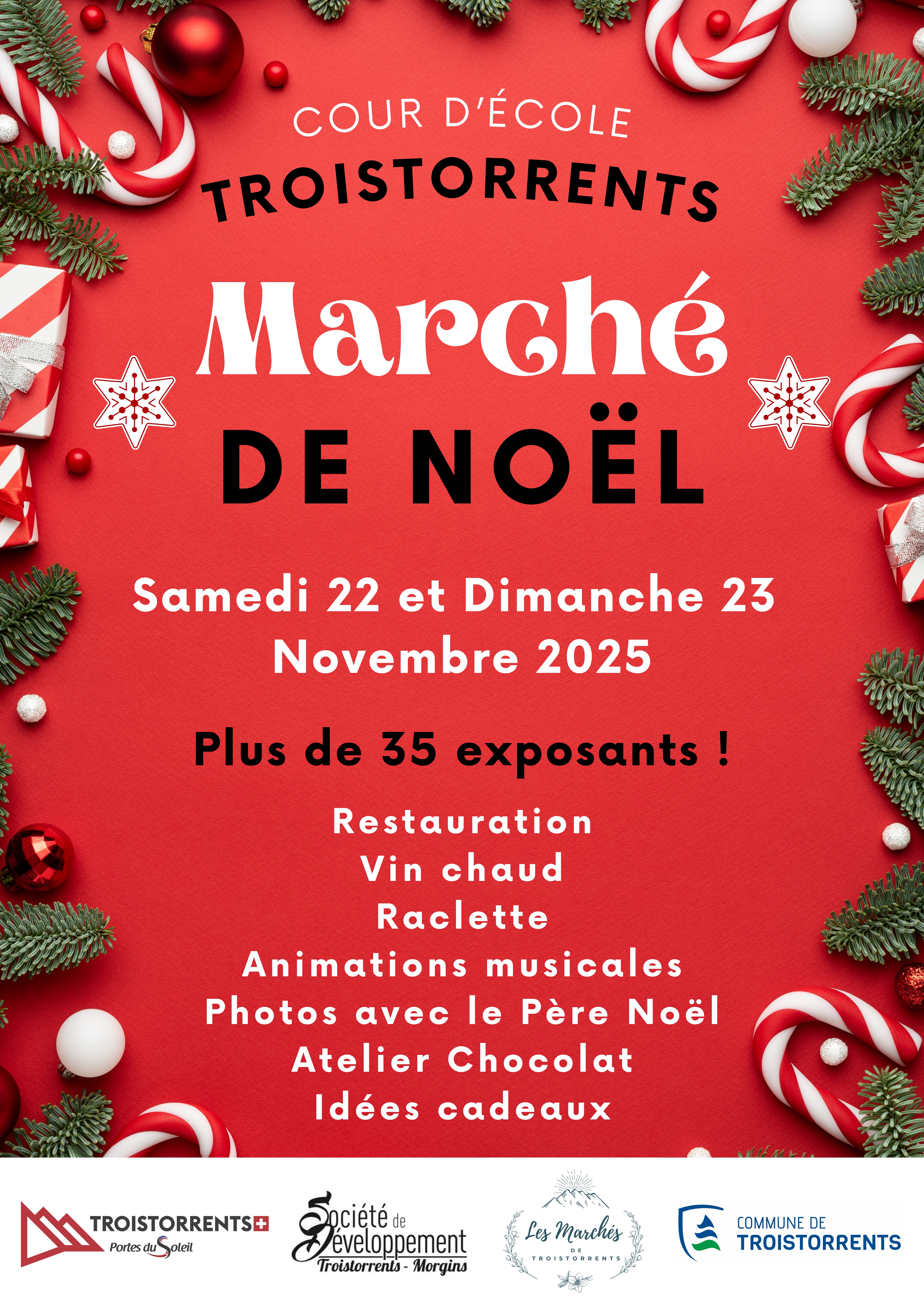 Die Einwohner von Troistorrents haben ein maßgeschneidertes Programm zusammengestellt, das Sie in den Zauber dieser beliebten Jahresendzeit eintauchen lässt: Spiele für Kinder, Fotos mit dem Weihnachtsmann, musikalische Unterhaltung, zahlreiche Aussteller und vieles mehr, das es zu entdecken gilt!