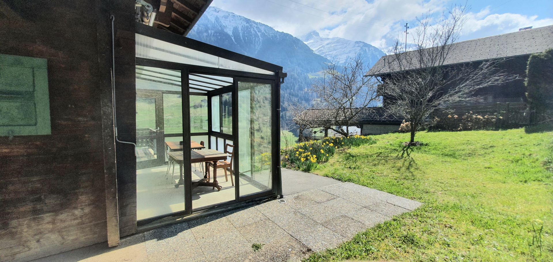Blick auf die Dents du Midi, Veranda + Terrasse und 2 Balkone.