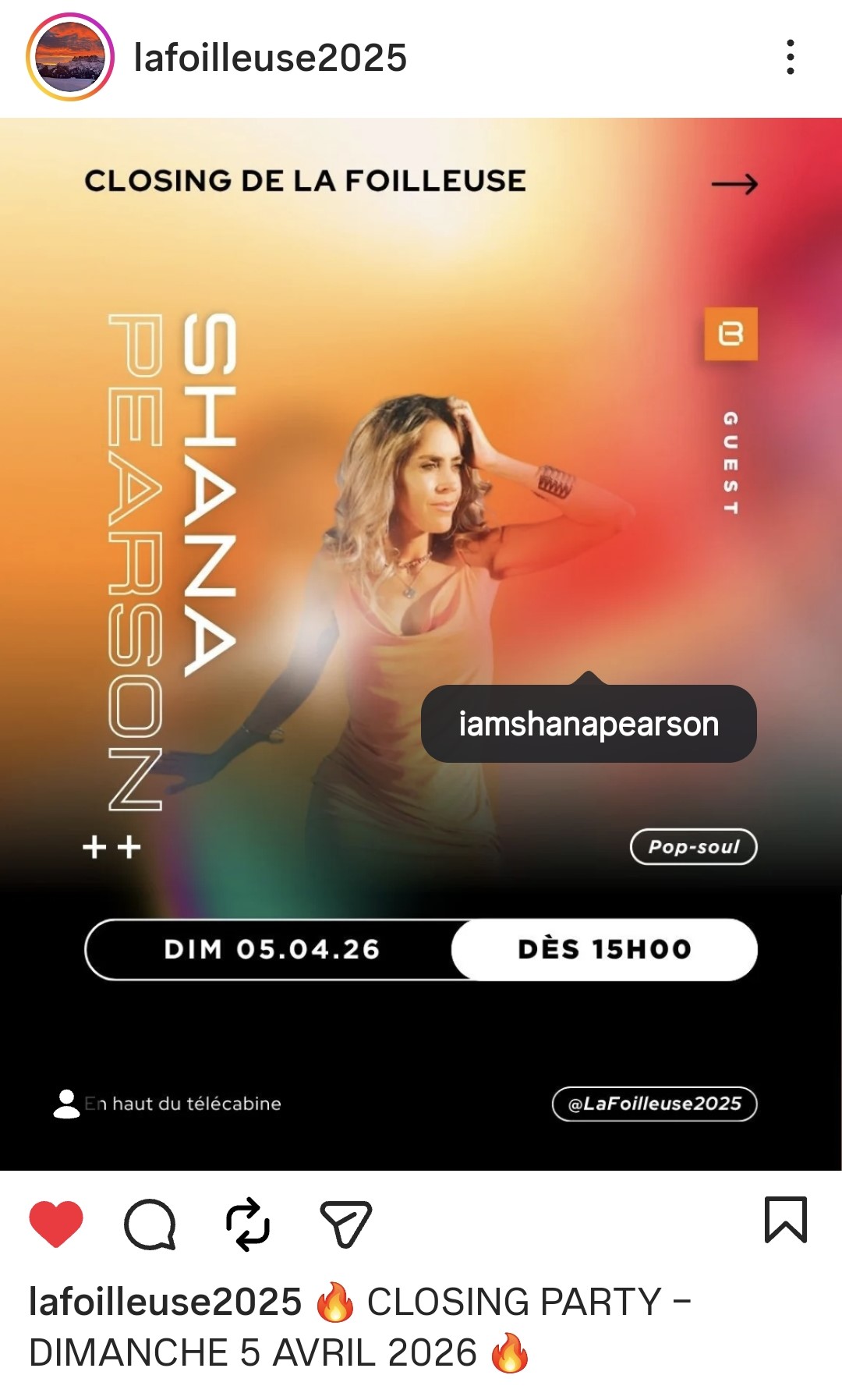 Ab 15:00 Uhr erleben Sie ein Live-Set von Shana Pearson auf den Pisten.