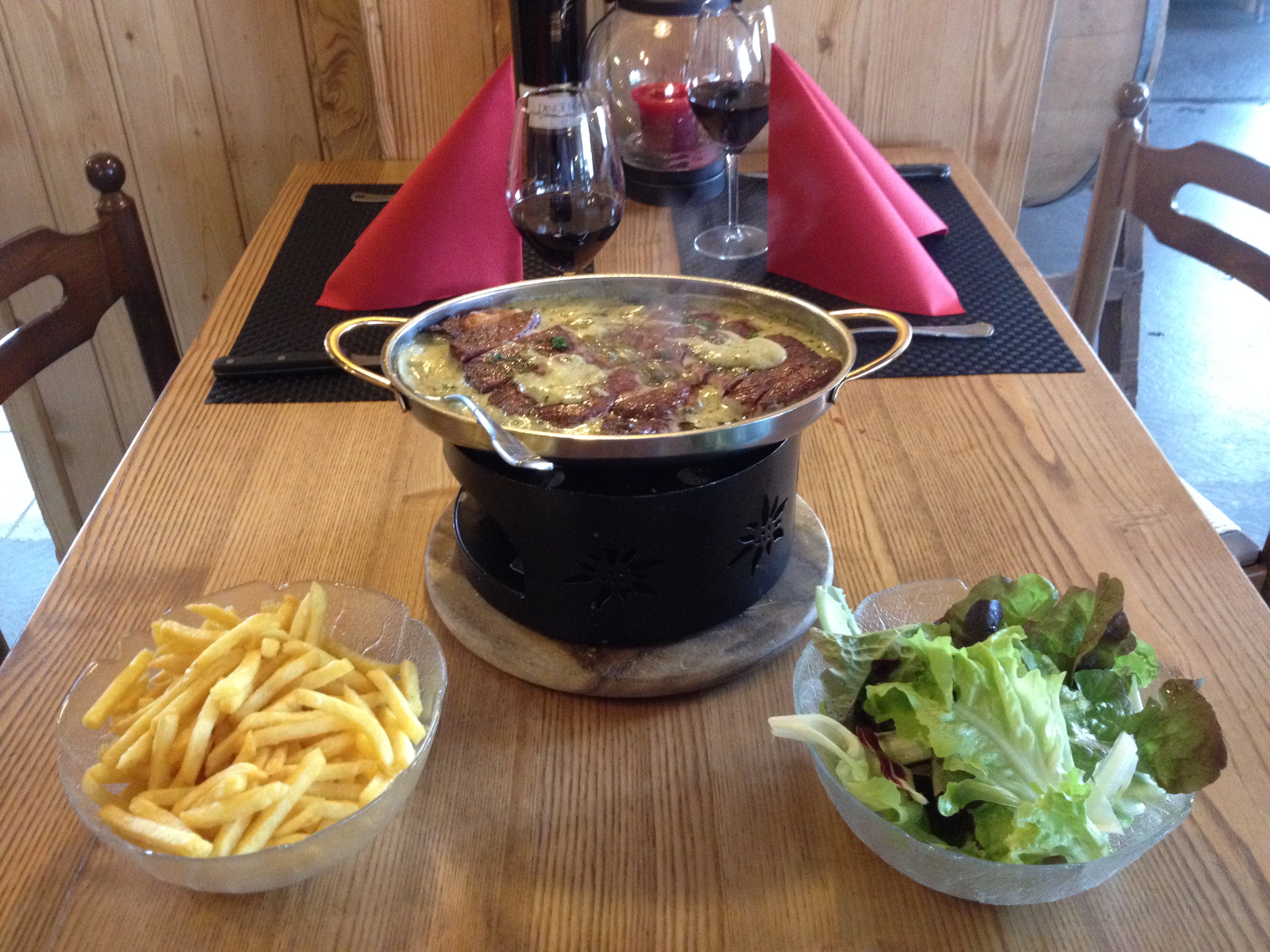Das Restaurant Fontaines Blanches empfängt Sie in warmen Stimmung und bietet traditionelle Küche mit regionalen Produkten. Die Familie Rey-Mermet, die den Käse und das Rindfleisch selber produzieren, servieren Ihnen Produkte hoher Qualität.
