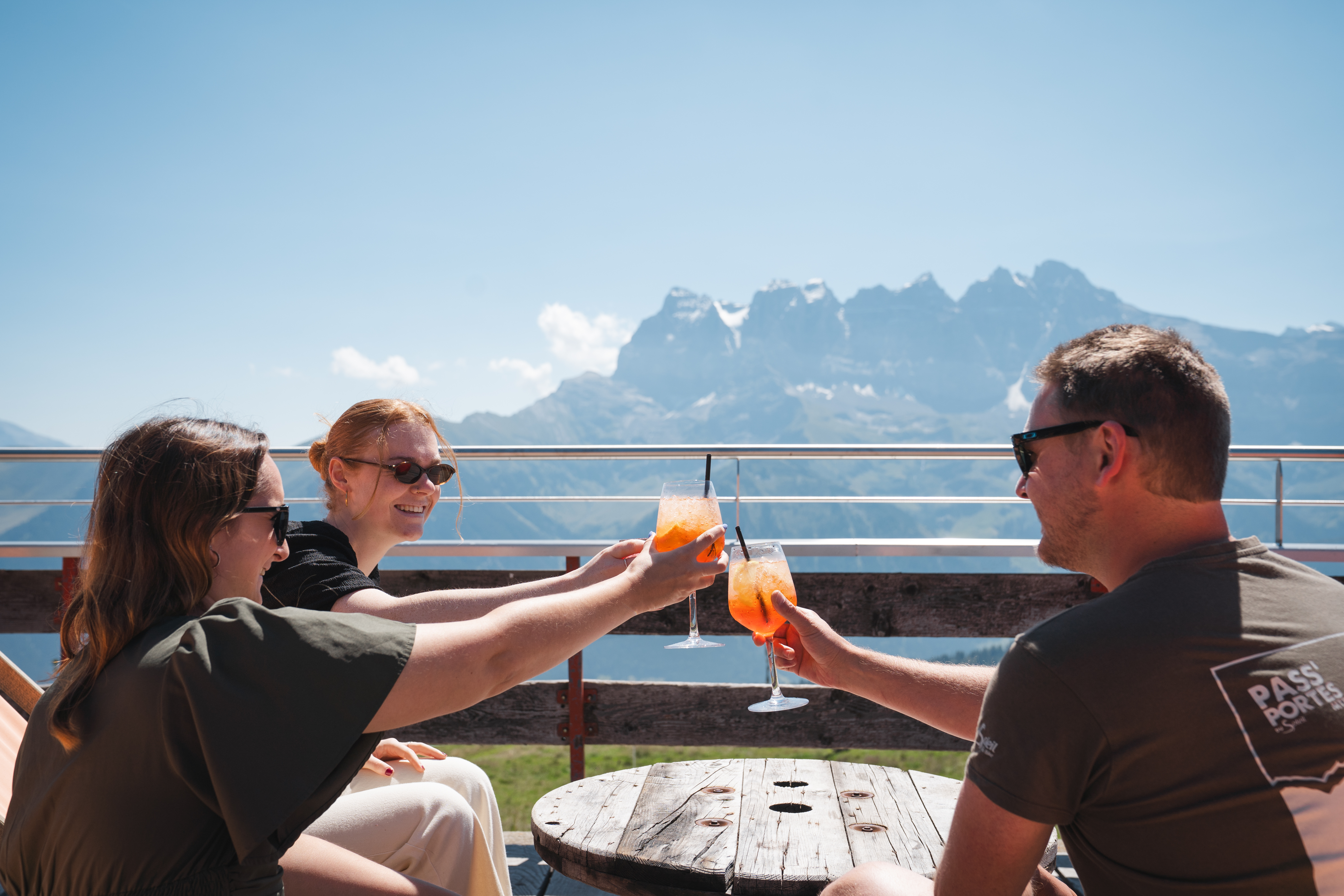 Als echter Balkon vor den Dents-du-Midi, auf dem Gipfel der brandneuen ‚Morgins Gondel‘ gelegen.