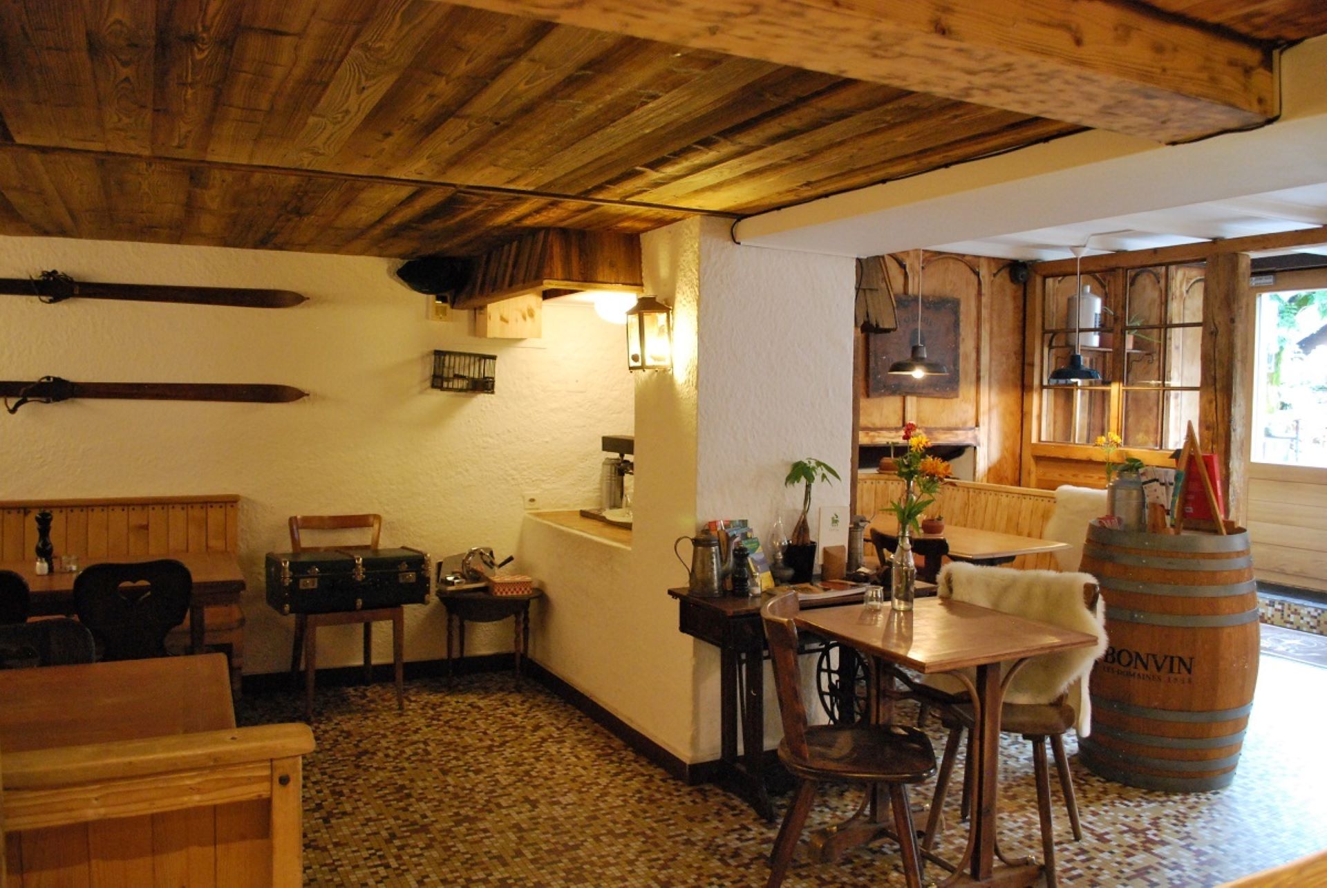 Im Sommer ist die Terrasse ein wundervoller Ort, um eine Mahlzeit oder einen Aperitif unter dem Blick auf die Dents du Midi zu genießen. Im Winter herrscht drinnen eine andere Atmosphäre, und käselastige Gerichte stehen im Mittelpunkt. Es ist schön, sich nach einem Skitag mit einem hausgemachten Glühwein aufzuwärmen.