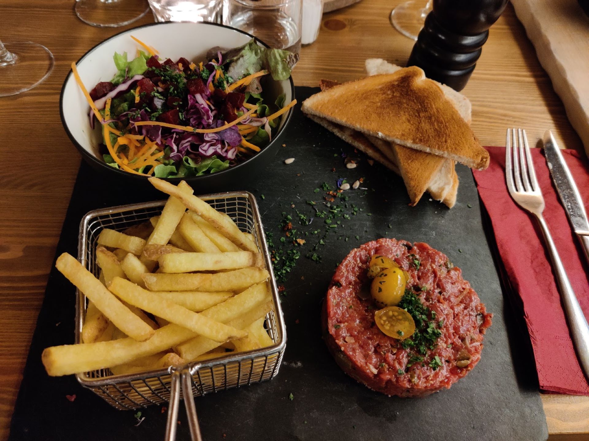 Die große Spezialität des Restaurants sind Rösti, die entweder klassisch oder mit Atriaux (schweizerischen Fleischbouletten) oder Curryhuhn für eine originellere Variante serviert werden.