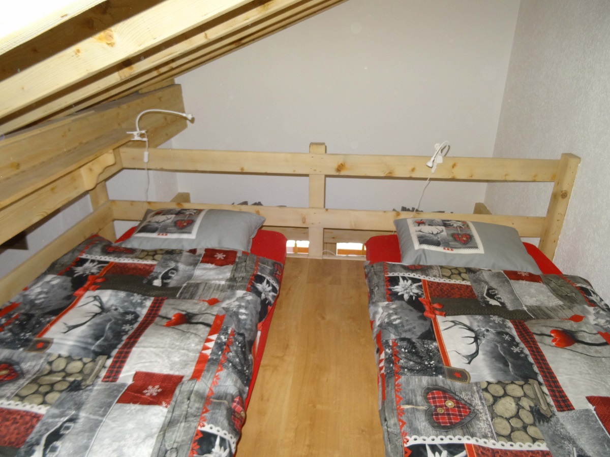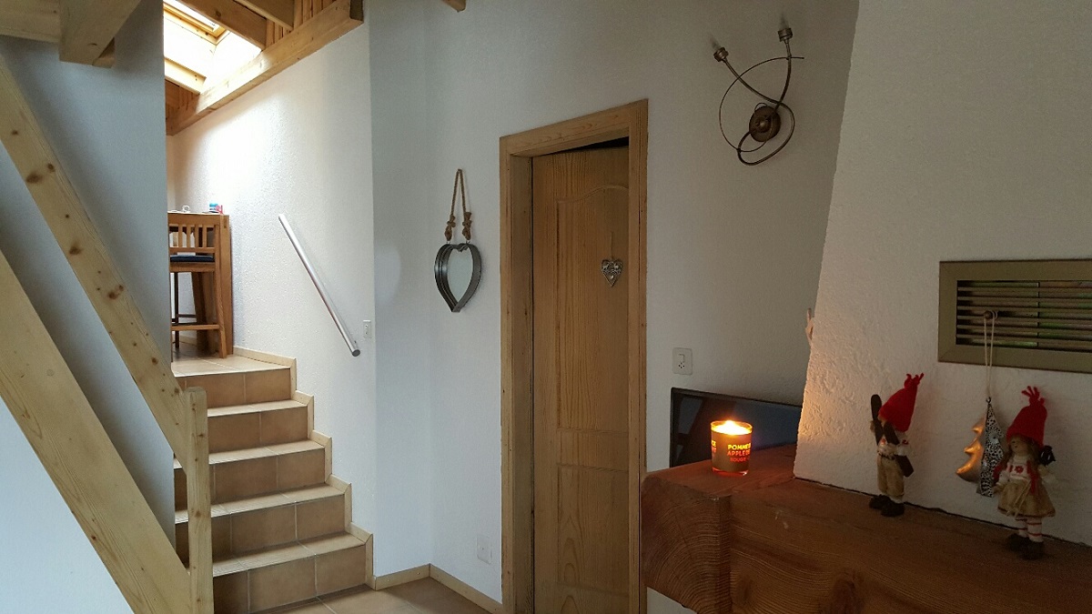 2.5 room apartement with mezzanine (45 m2, access ground floor, balcony 3rd floor) for 4 persons, including: living room (TV, wifi), mezzanine with 2 single beds, separate kitchen on a half level with dining area, (induction stove, oven, dishwasher, Nespresso coffee machine, fondue set, raclette set), 1 bedroom with 1 double bed (160×200). Bathroom (shower/WC). 1 balcony.