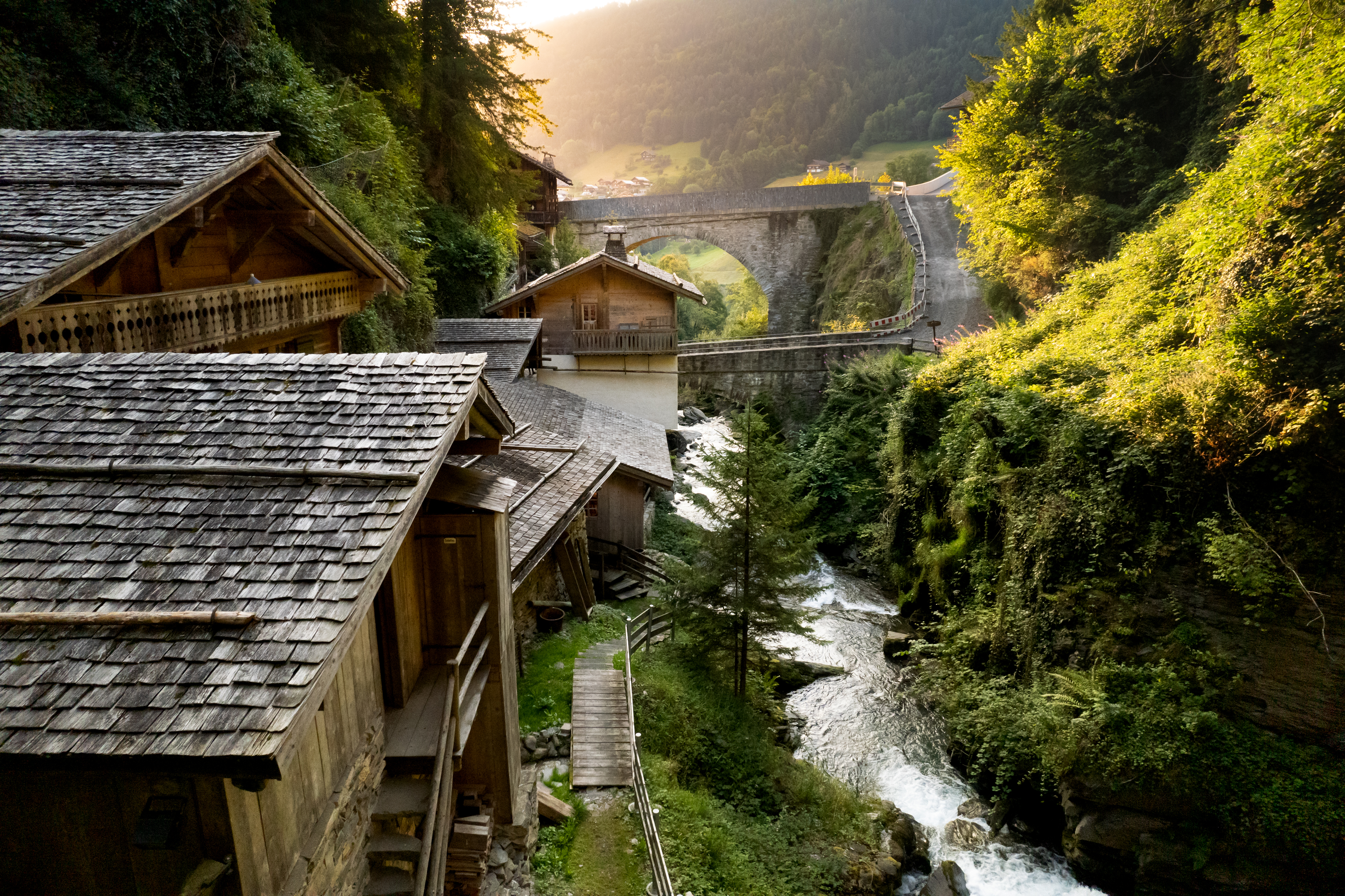 Classified as an historic monument, and particularly beautiful when lit up at night, this meticulously reconstructed mill clings higgledy piggledy to the precipitous side of the Tine River Gorge.