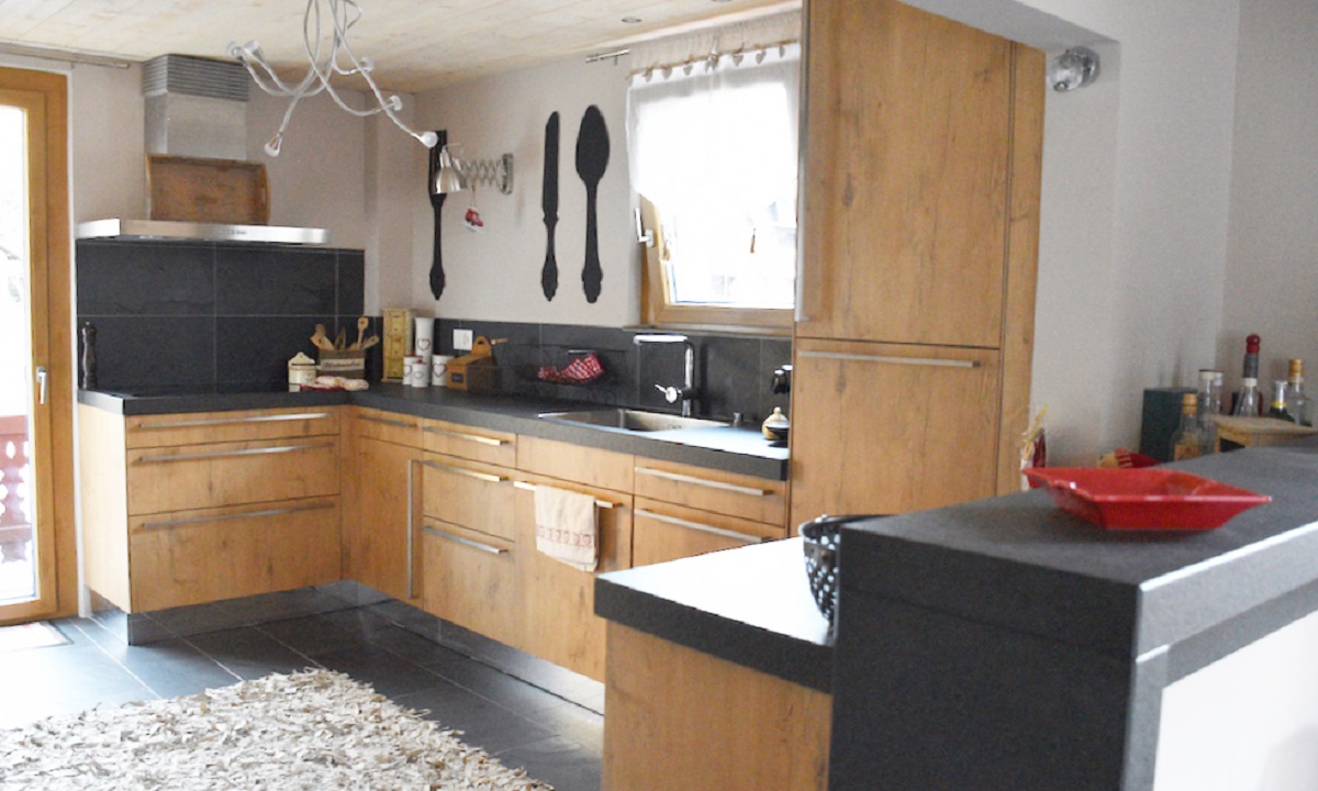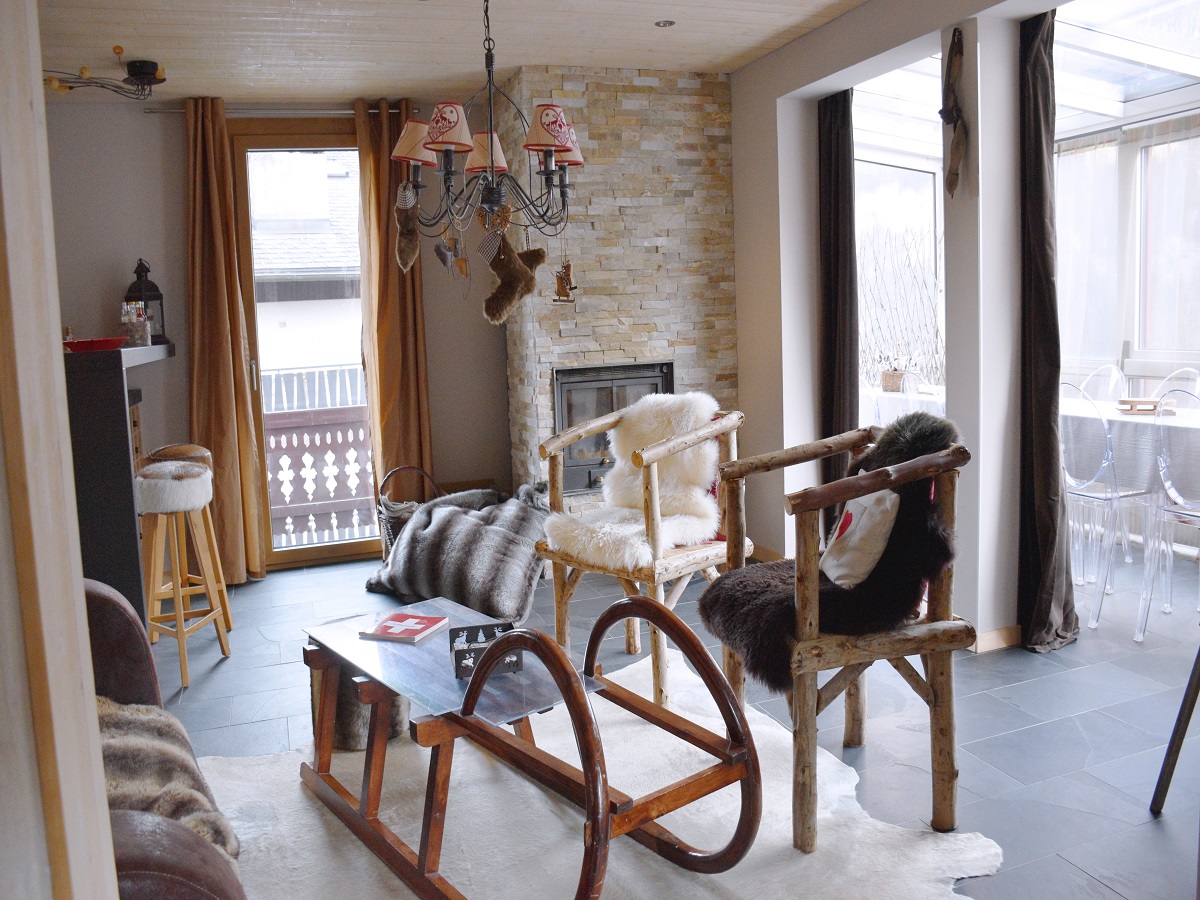 6.5 rooms apartment (130 m2 duplex, 1st and 2nd floor) for 8 persons, including: Lower floor: 2 lounges, 1 of which with fireplace (TV, wifi), open kitchen (vitroceramic stove, dishwasher, oven, microwave, Nespresso coffee machine, fondue and raclette set), a dining room with large window and 1 bathroom (shower/WC), balconies. Upper floor: 2 double bedrooms with balconies, 1 double bedroom with bunk bed, 1 double bedroom with 1 pullout bed and balconies. Bathroom (bathtub/WC), 3 outdoor parking spaces.