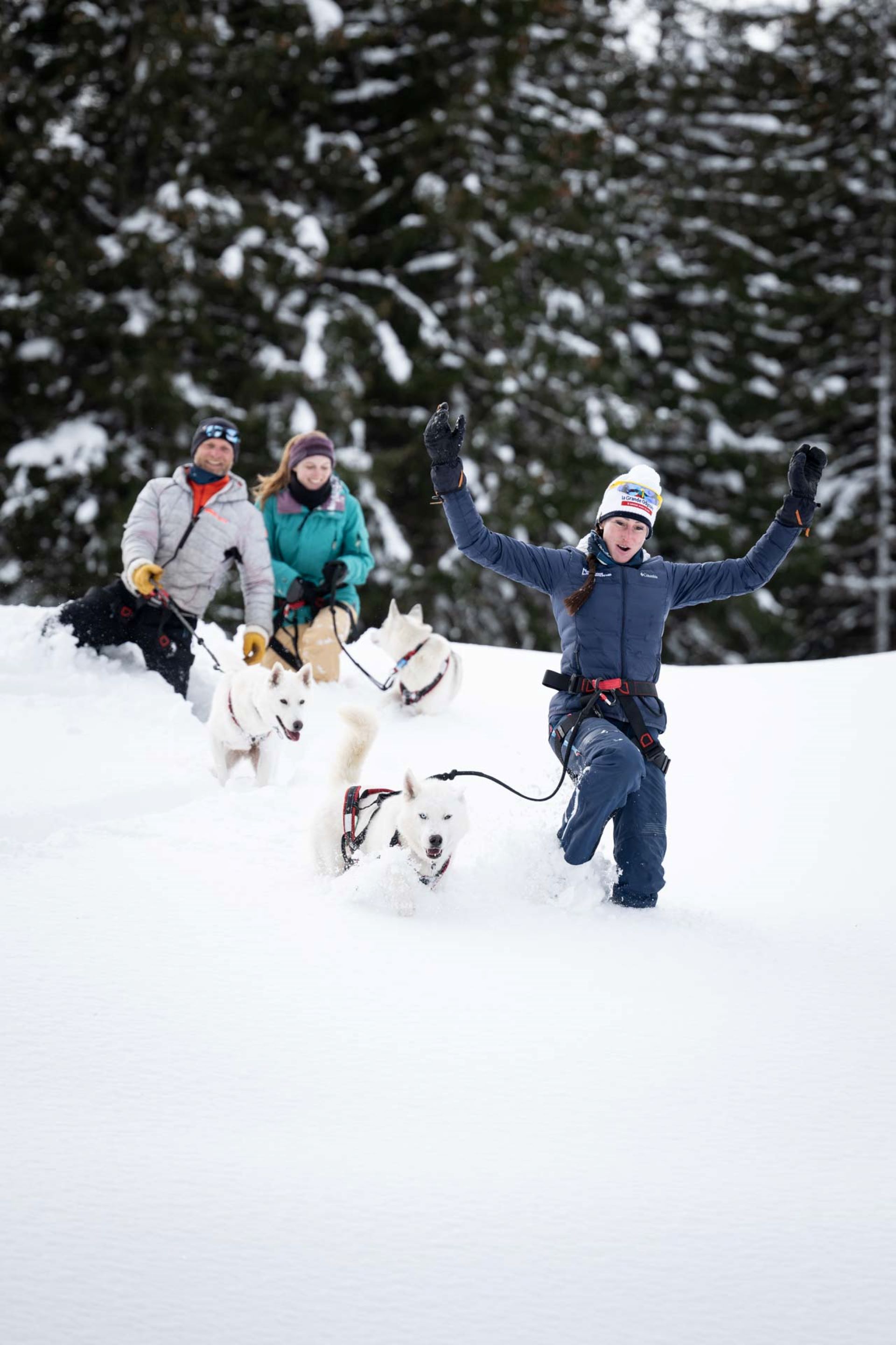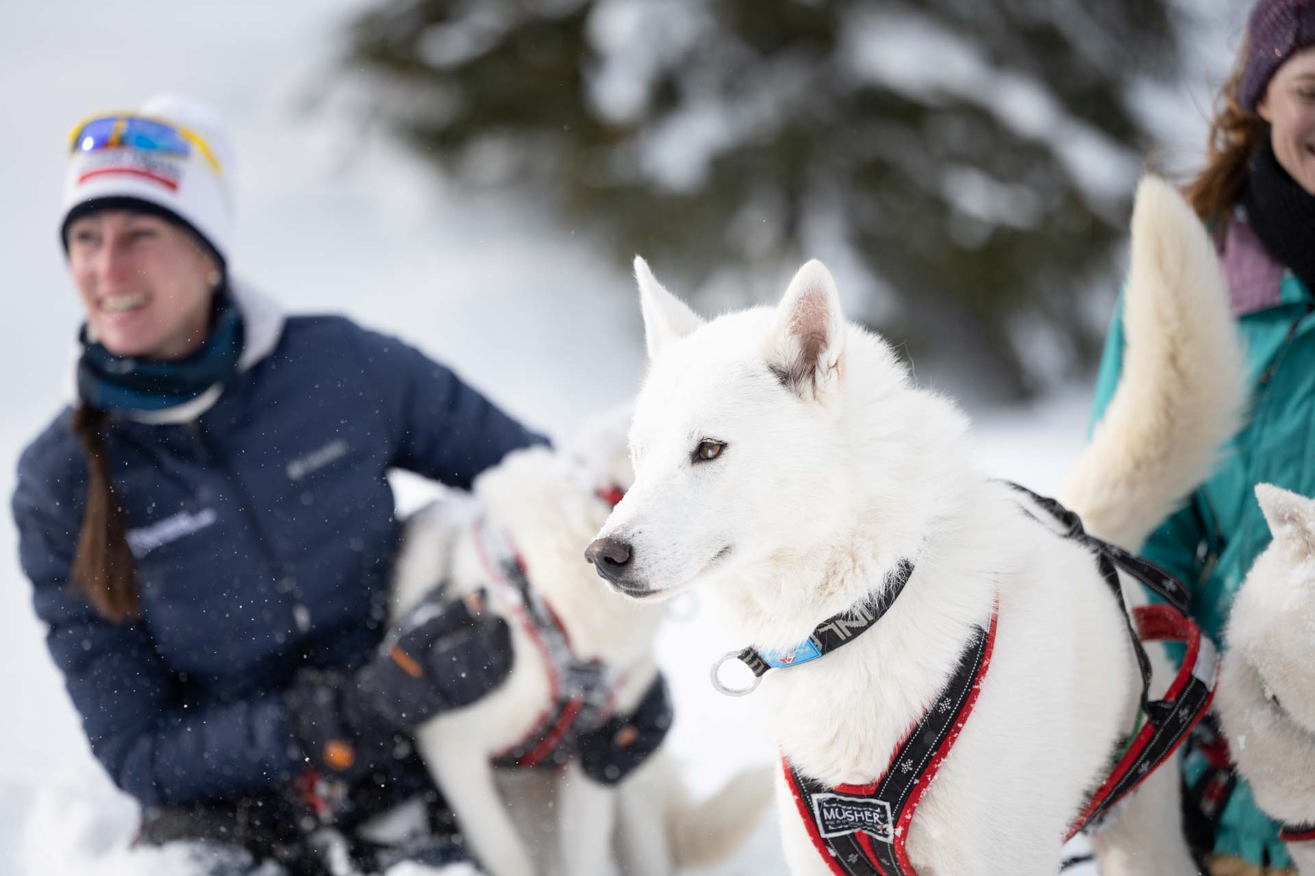 Come and enjoy an unforgettable adventure with Violaine’s champion huskies — world champion in her discipline in 2024 and 2025 — in the enchanting setting of Grand Paradis in Champéry. Seated in a sled or a kart (depending on weather conditions) and guided by a musher, you’ll experience a unique and magical moment.