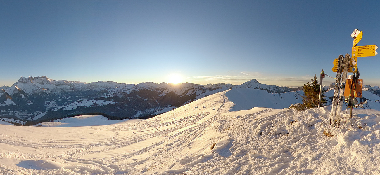 Completely off-piste, located near the Corbeau ski slope, this itinerary is our only south-facing trail. Also our longest itinerary, it climbs all the way up to the Pointe de Bellevue for a breathtaking 360° panoramic view that includes Lake Geneva.