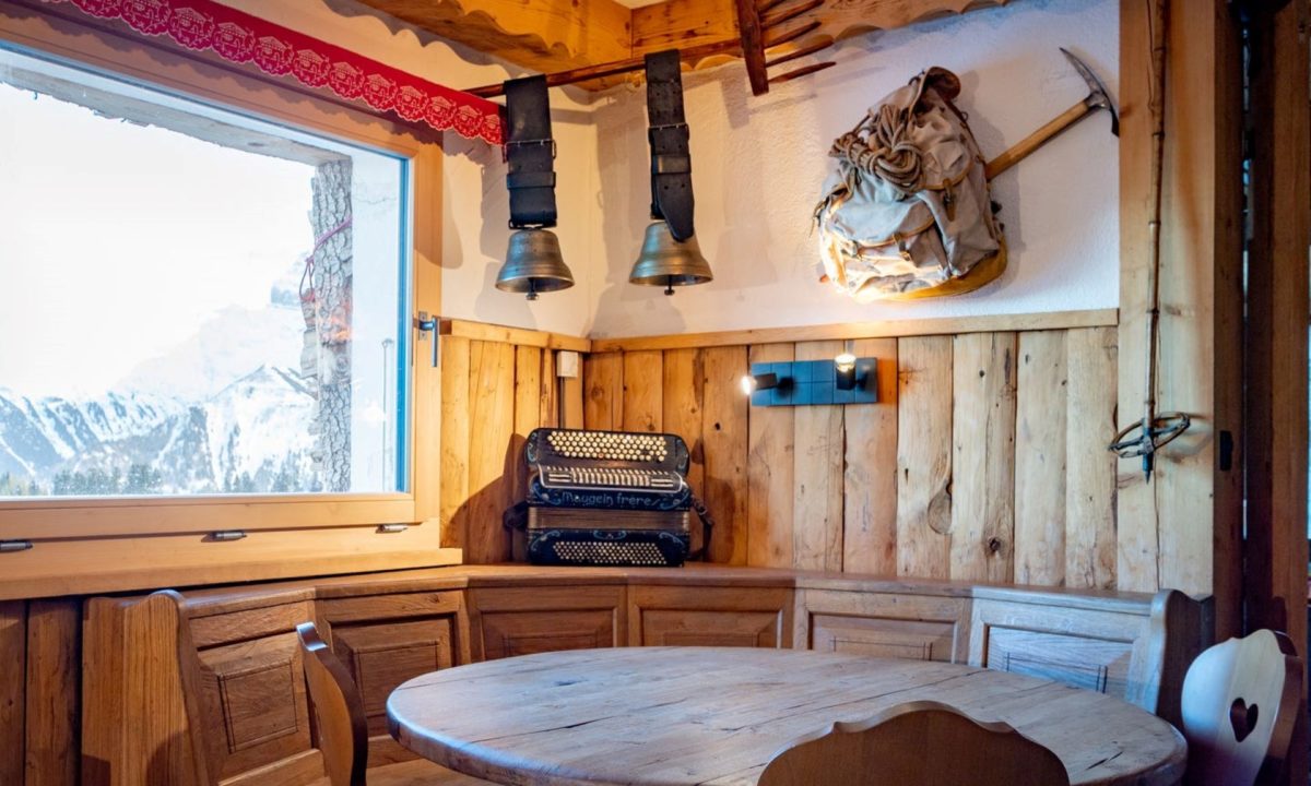 Winter or summer, guests can arrive on skis or on foot all day long for a meal with panoramic views of the Dents du Midi.