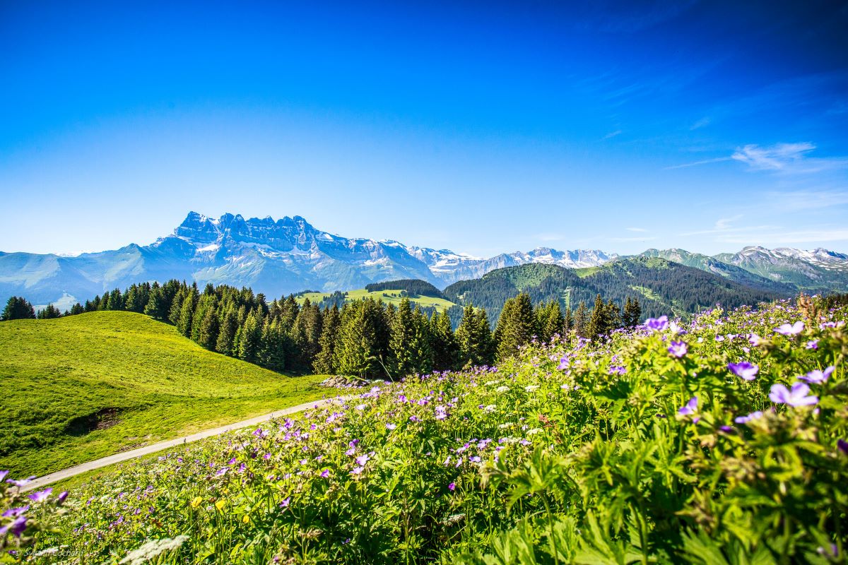 The "Route des Alpages" is an easy hike that takes you past mountain restaurants where you can enjoy local products on a terrace facing the Dents du Midi.