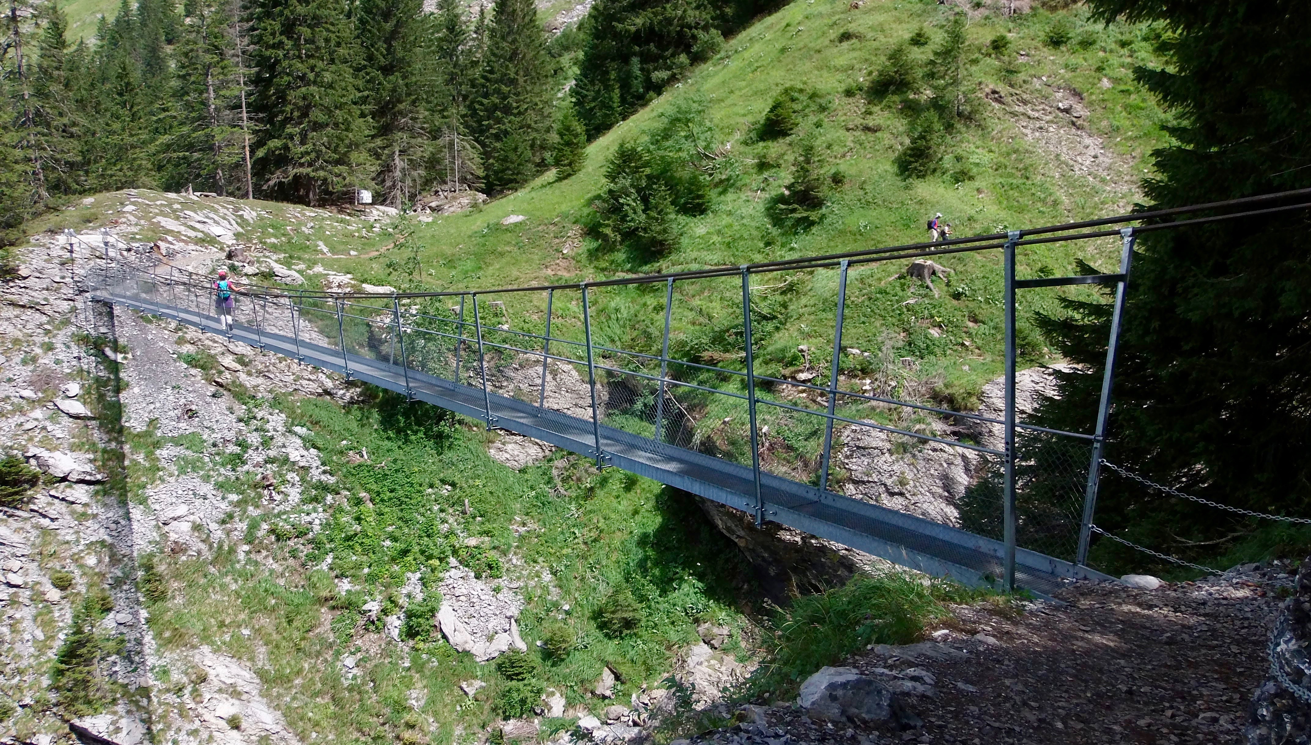 Making your way back, you’ll continue downhill to the Refuge de Bonaveau, then follow the path on your right (which eventually leads to the Cabane de Susanfe). When the trail splits off for Susanfe, you’ll continue straight to the Belle-Etoile alpine bridge, built in 2016 to span the spectacular cascading torrents of the Sauflaz River Gorge.