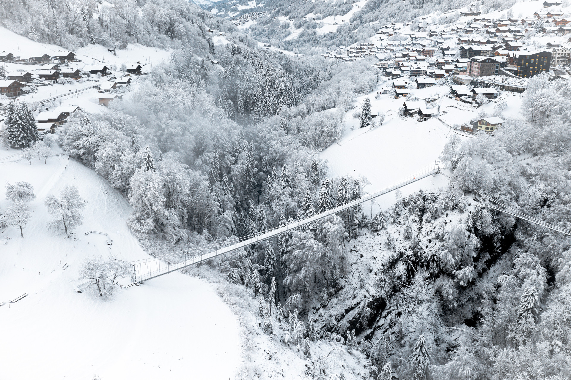 Inaugurated in July 2021, this graceful suspension bridge spans the Vièze River valley, connecting the village of Troistorrents with the hamlet of Chenarlier.