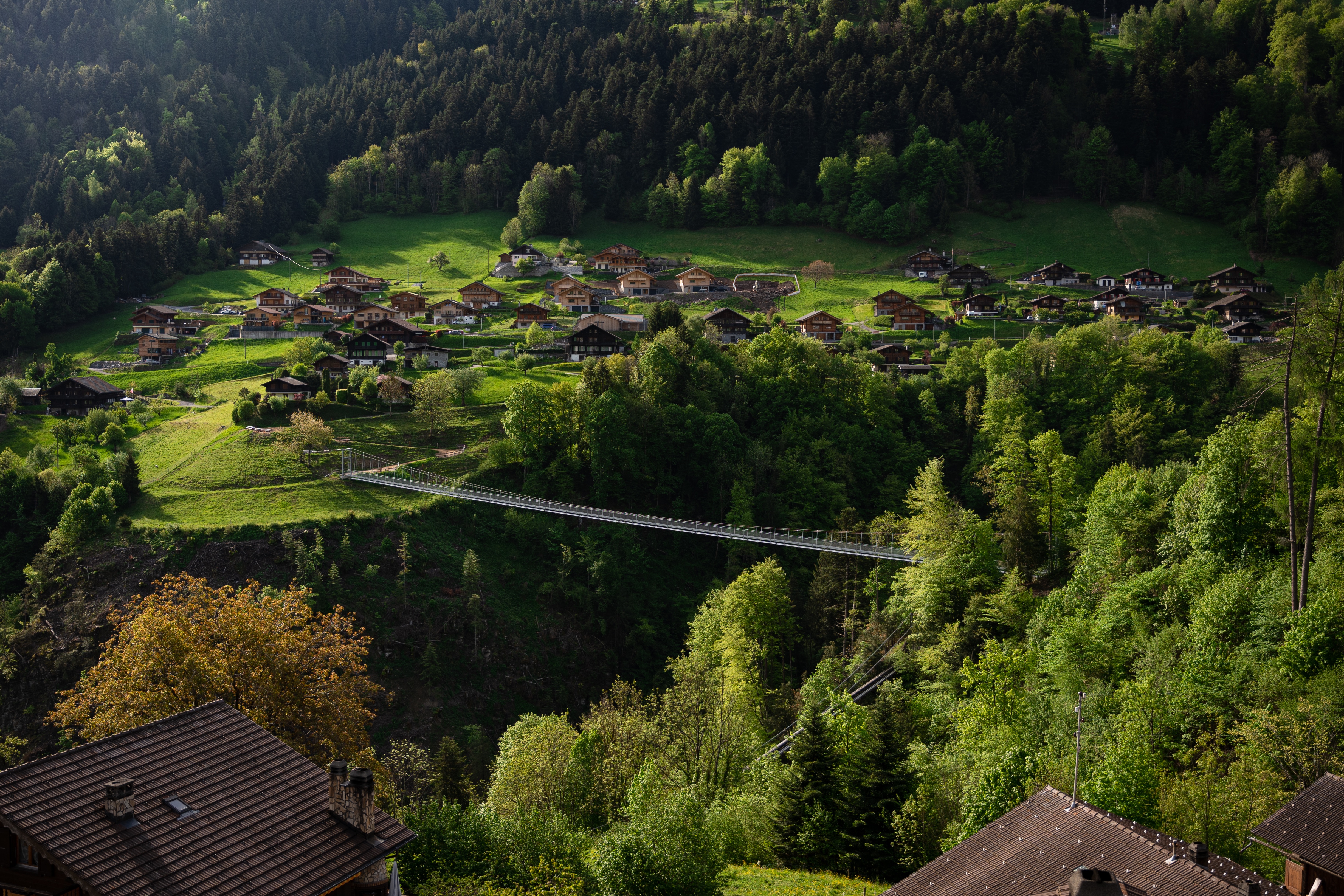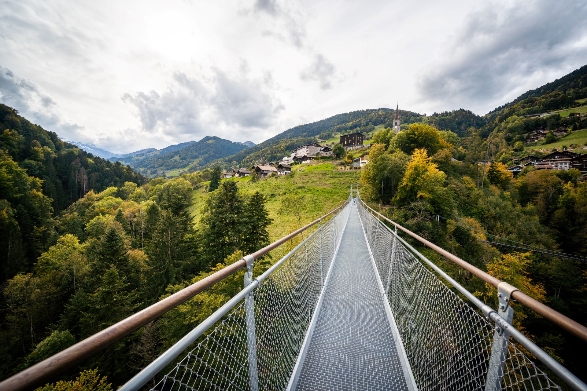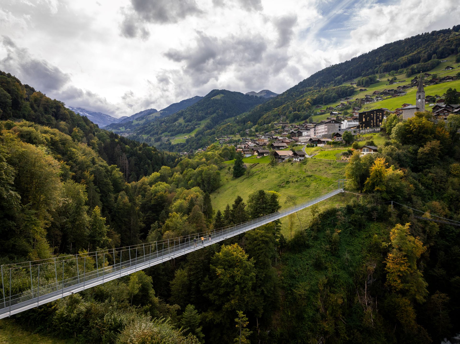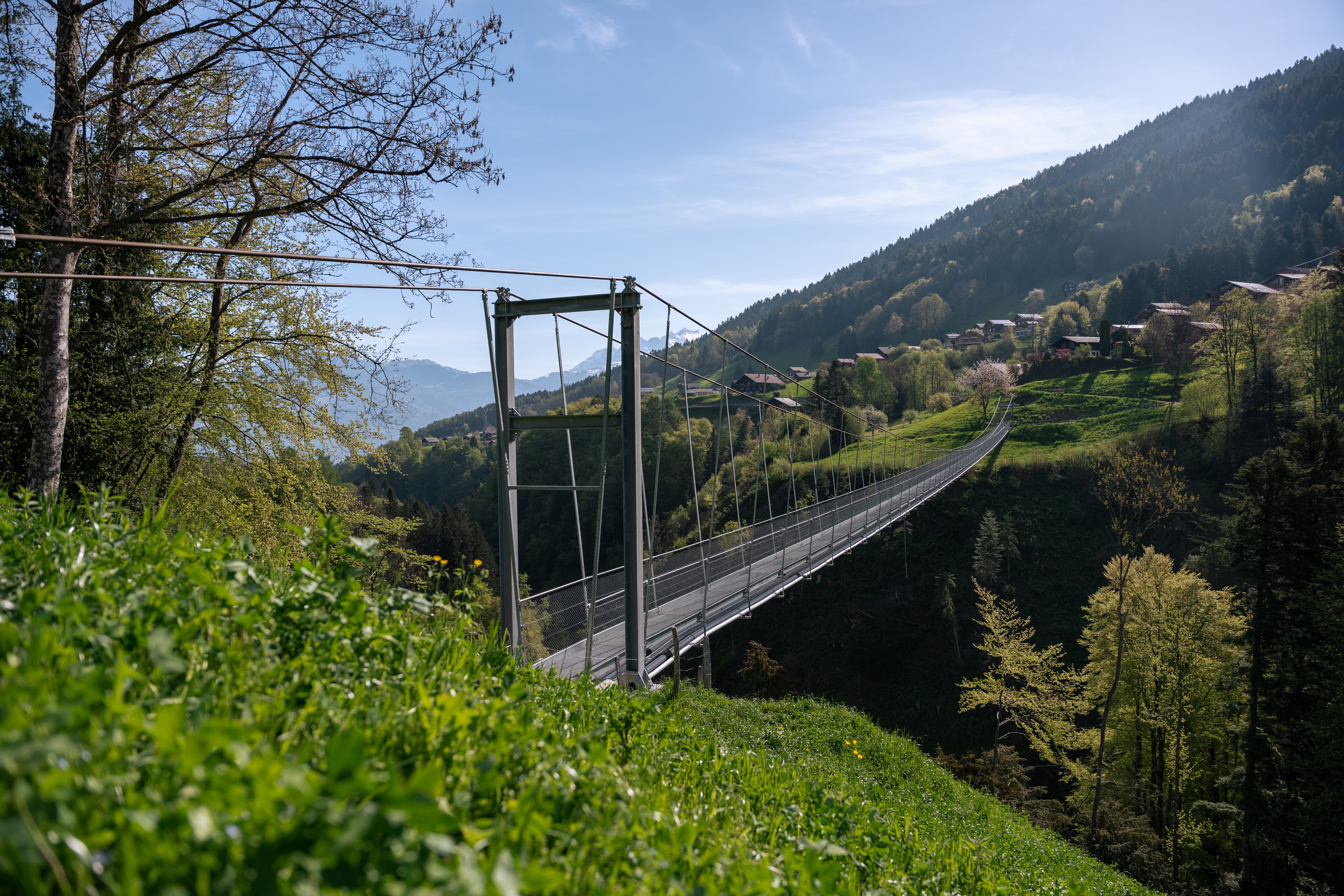 Inaugurated in July 2021, this graceful suspension bridge spans the Vièze River valley, connecting the village of Troistorrents with the hamlet of Chenarlier.
