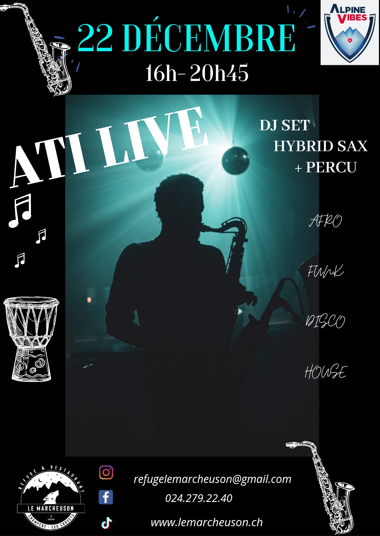 The good vibe at Marcheuson is guaranteed with a hybrid DJ set mixing saxophone, percussion and electronic sounds!