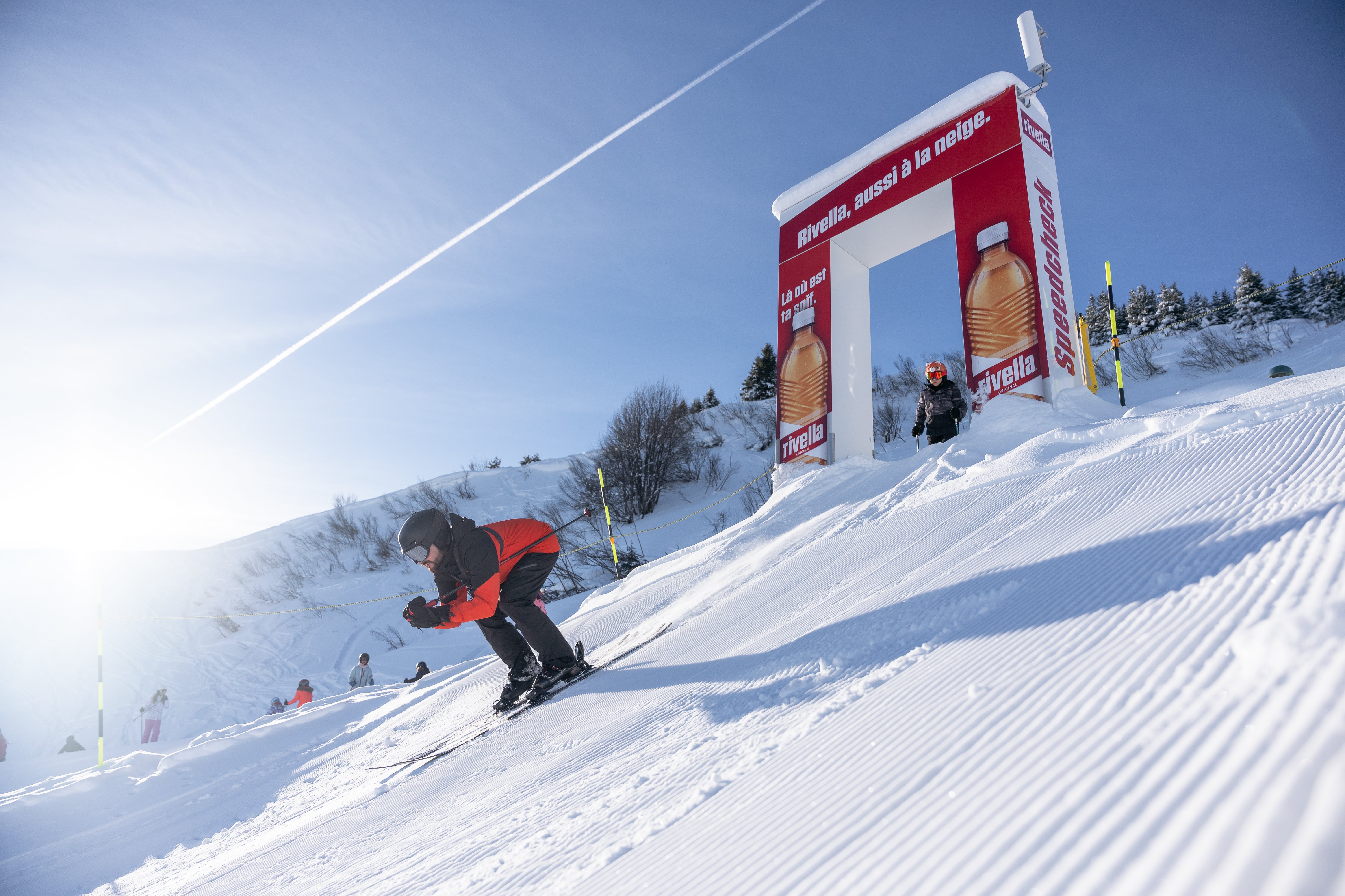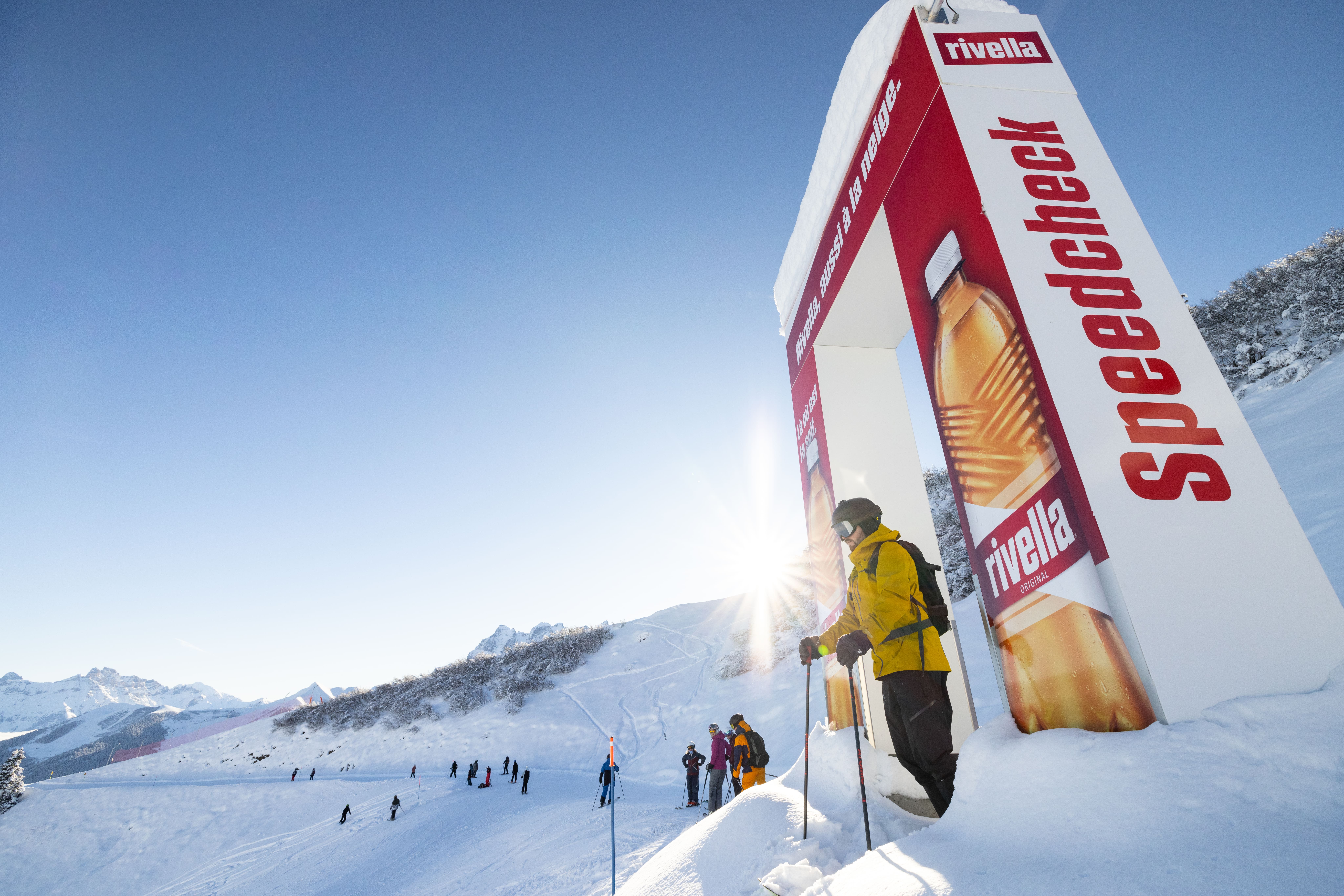 > Ever wonder how fast you are on skis? Time yourself at the Rivella Speed Check – make sure you smile for the photo when you cross the finish line!