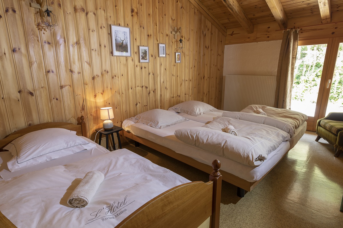 The 3 private rooms are for 2, 3 or 4 people. They offer you complete bedding and are equipped with duvets and bath towels.