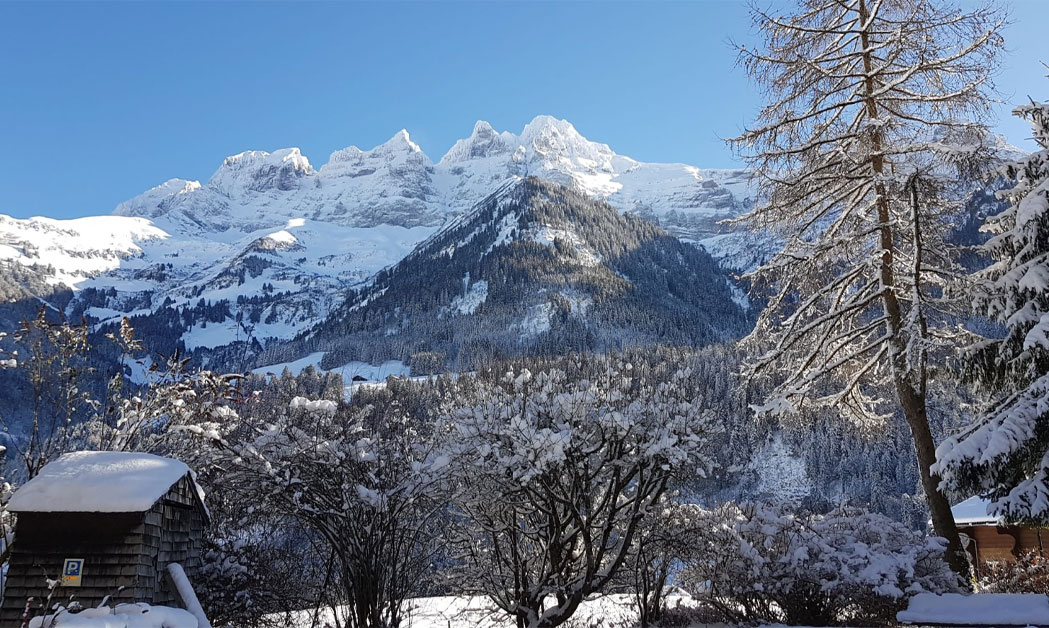 Comfortable furnished apartments of 5.5 rooms (3×2 beds) or 3.5 rooms (2×2 beds on the ground floor) in an old chalet, ideal for retirees or for quiet families. Located facing the Dents du Midi, with a garden (with BBQ), and parking. Easy access, 10 min walk from the village center. WiFi.