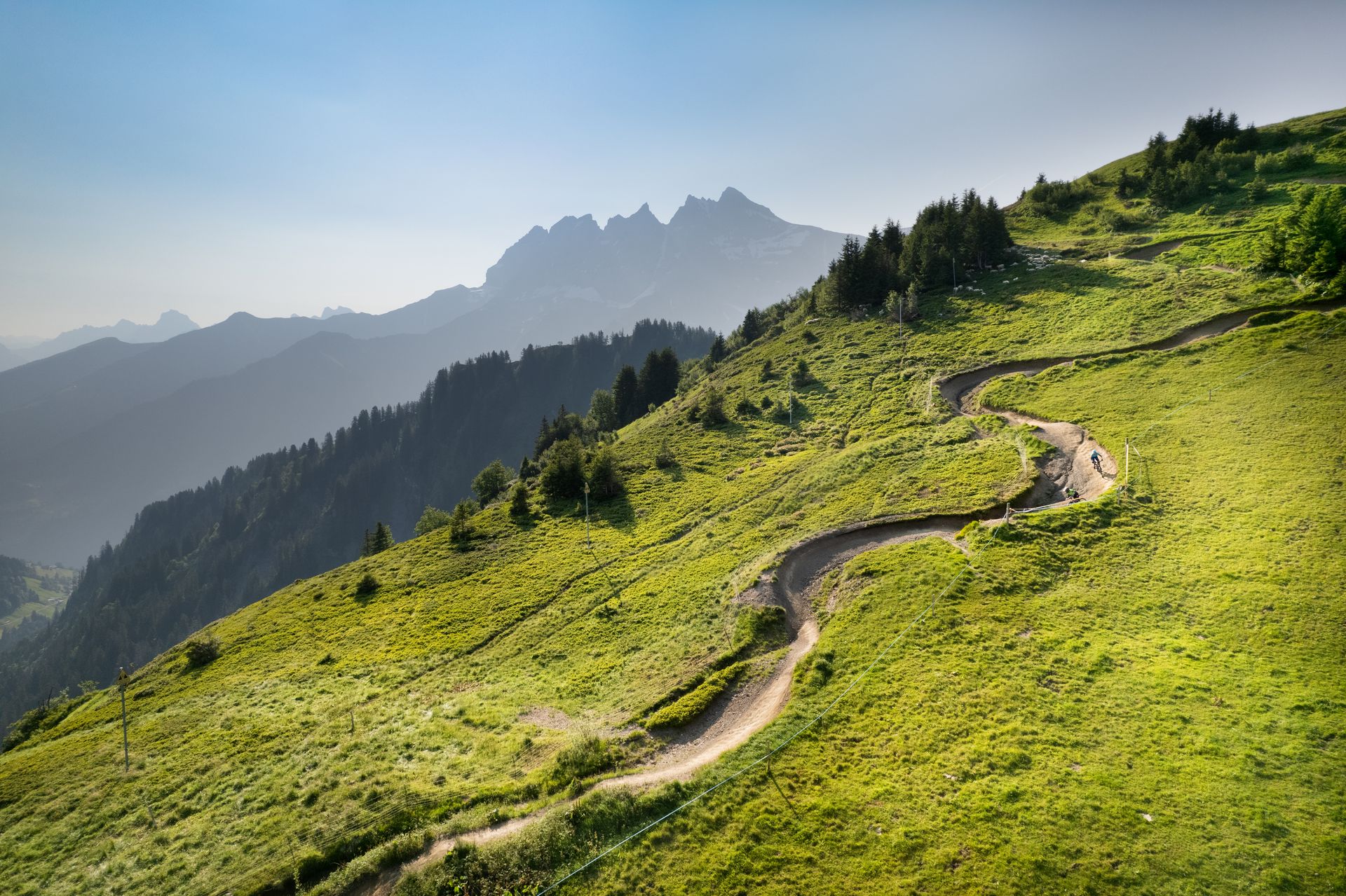 Accessible from the arrival station of the cable car and the top of the Crosets chairlift, the trail ends at the starting point of the resort’s facilities, allowing riders to head out for another run, either on one side or the other of the bike park, or descend to Champéry via the Sundance trail.