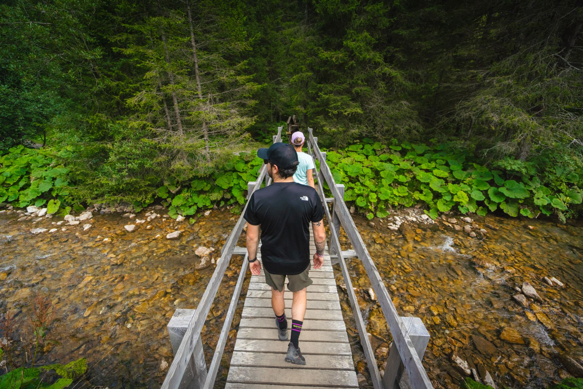 This easy hike leapfrogs over the Vièze River in Morgins 32 times, on wooden bridges, each named after a local flower.
