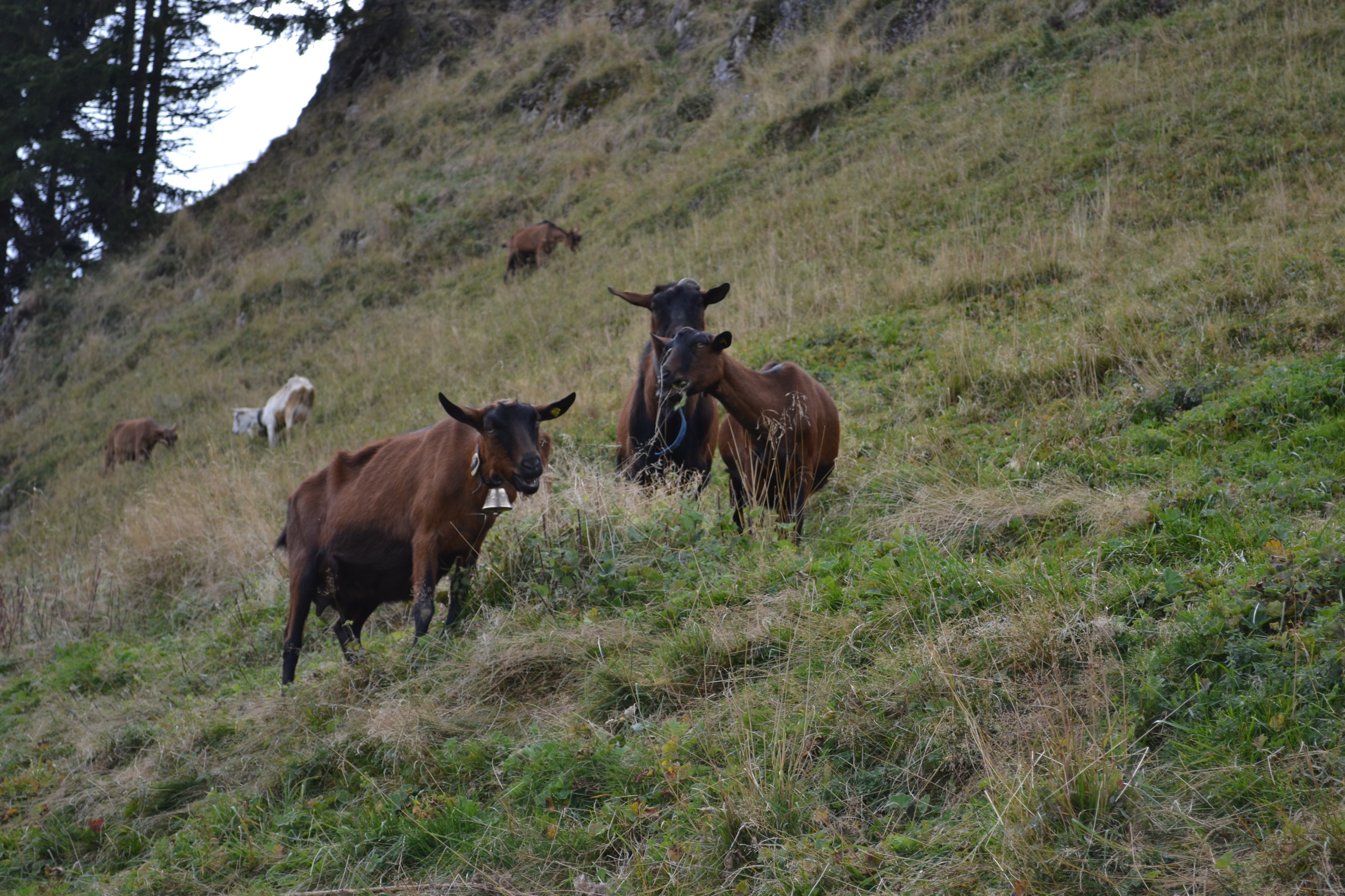 In summer, about thirty alpine chamois goats graze in the vast surrounding fields or take refuge in the heat of their barn in free stabling when the weather is not so good.