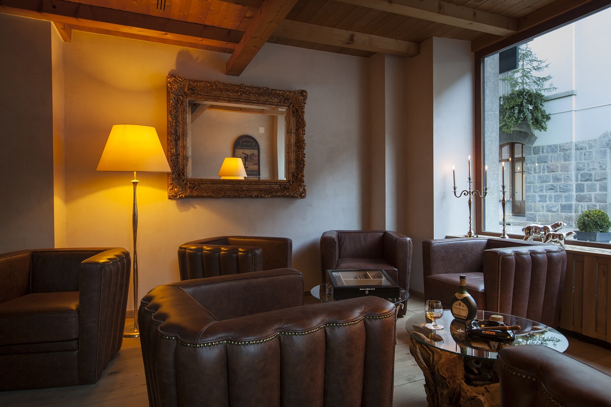 The comfortably-appointed cigar room is a little Havanna in the Alps. Here, guests can enjoy a selection of cigars accompanied by a smoky whisky, a velvety Cognac or other soothing digestif drinks.