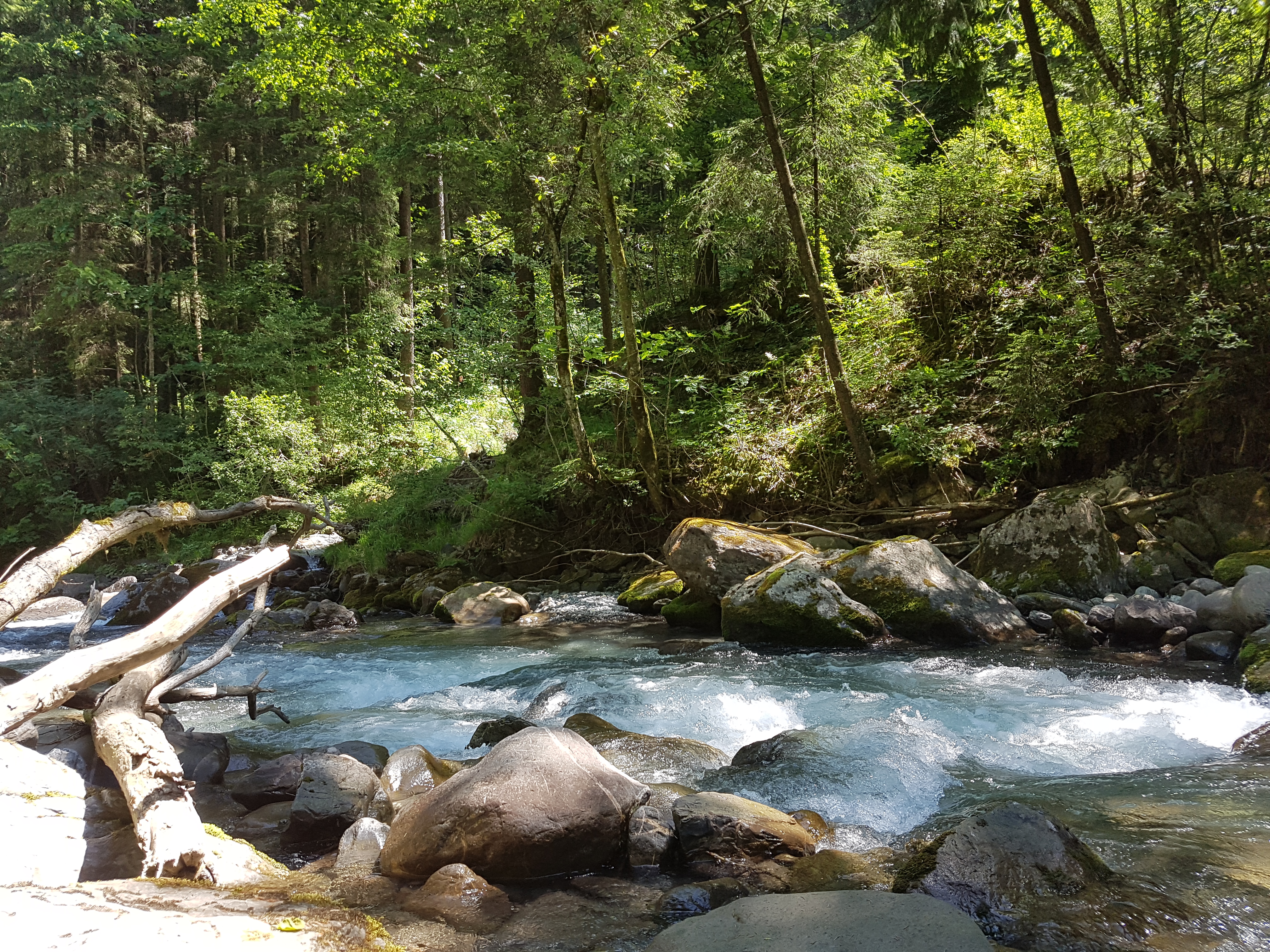 Cool off on the banks of the rushing Vièze River in the shady valley below Champéry.