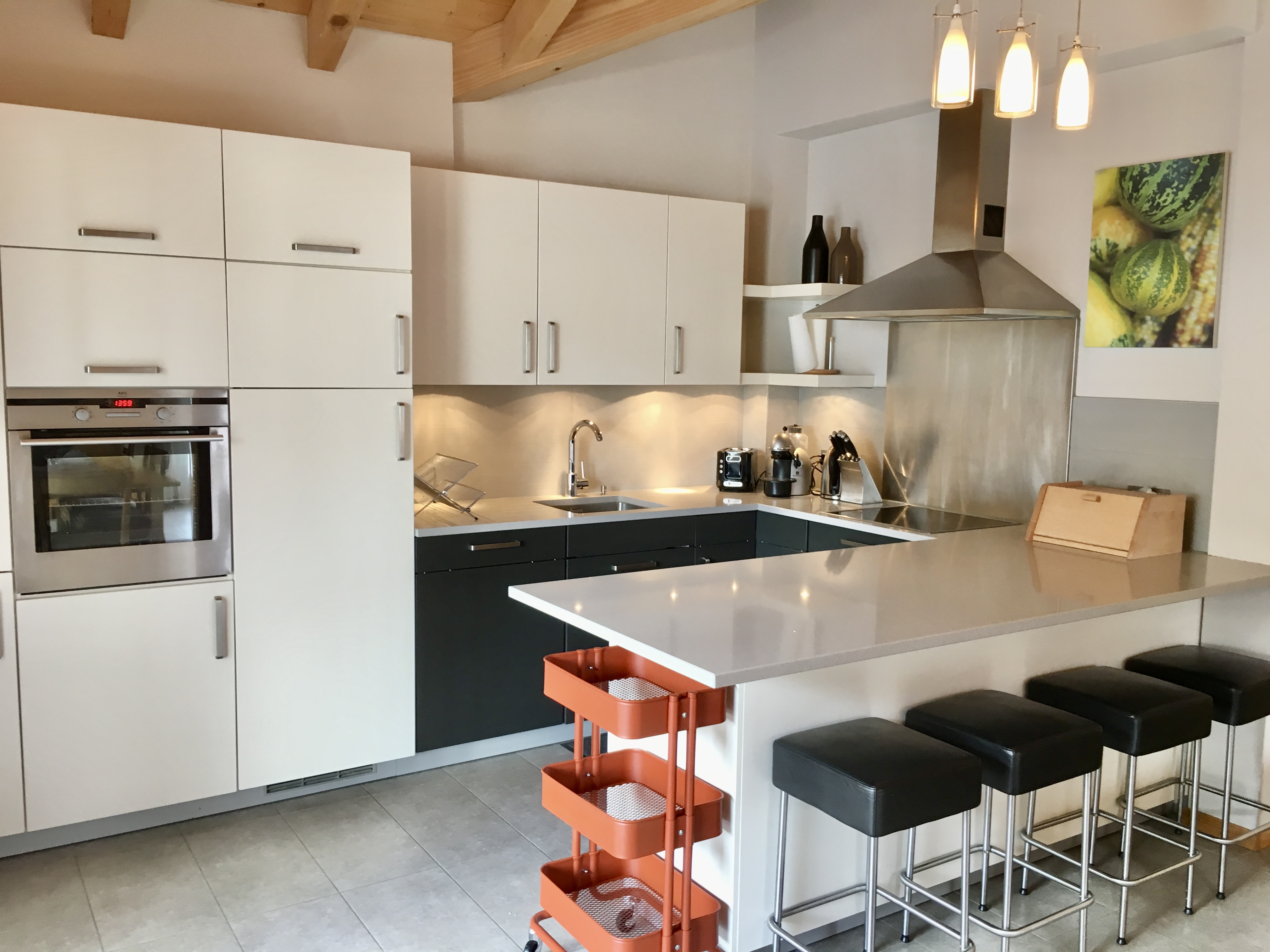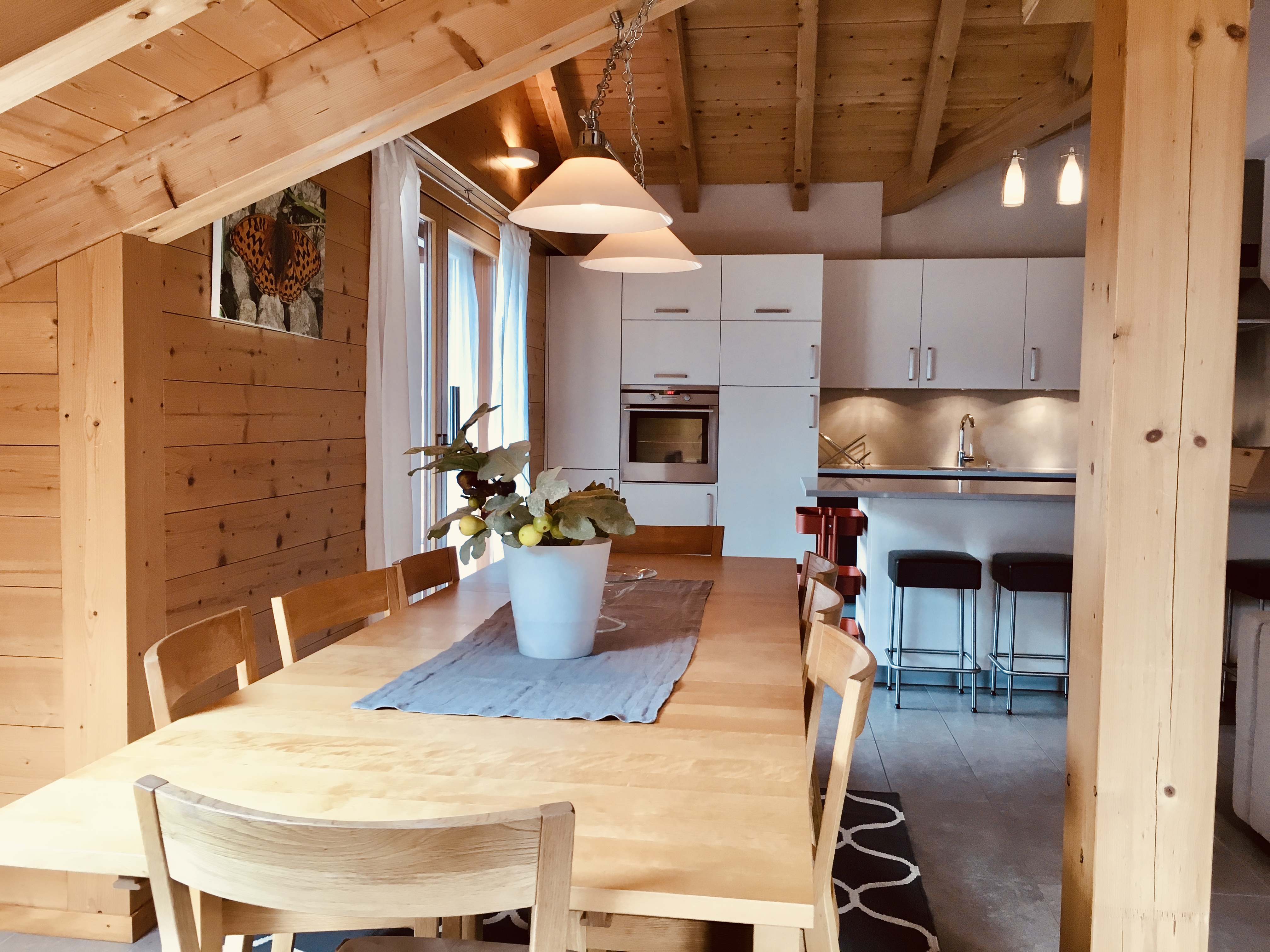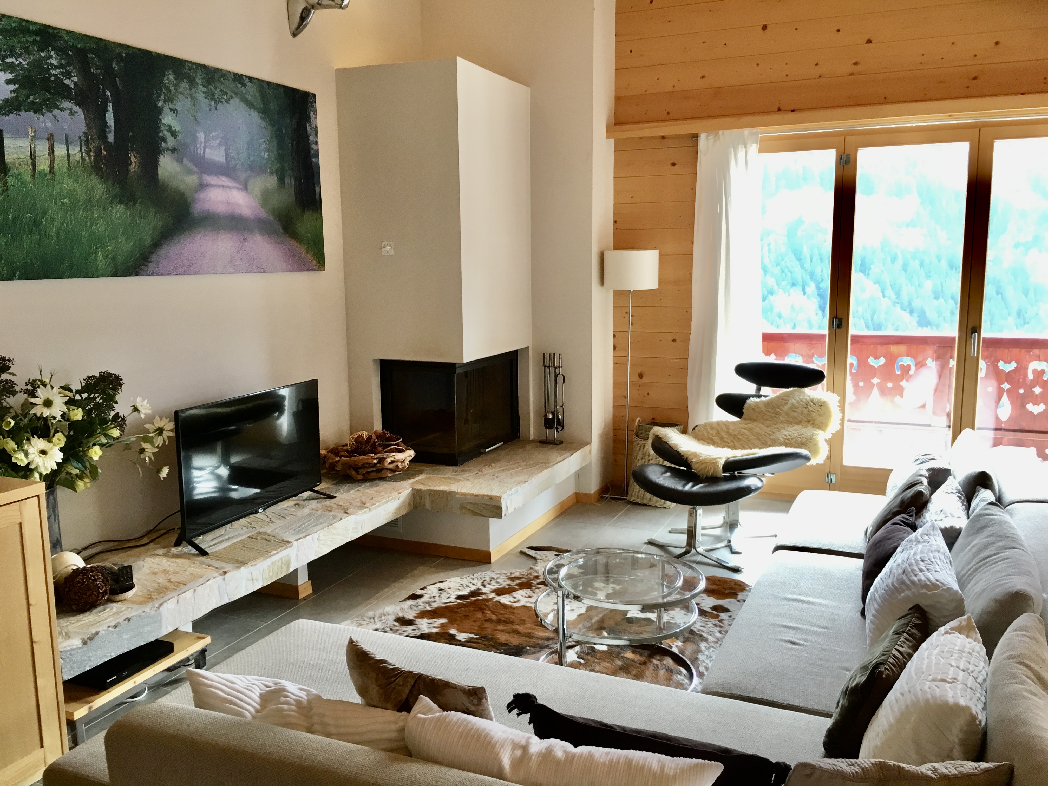This magnificent contemporary loft apartment offers 9 beds and a total area of 154m2 with breathtaking views of the Dents du Midi.