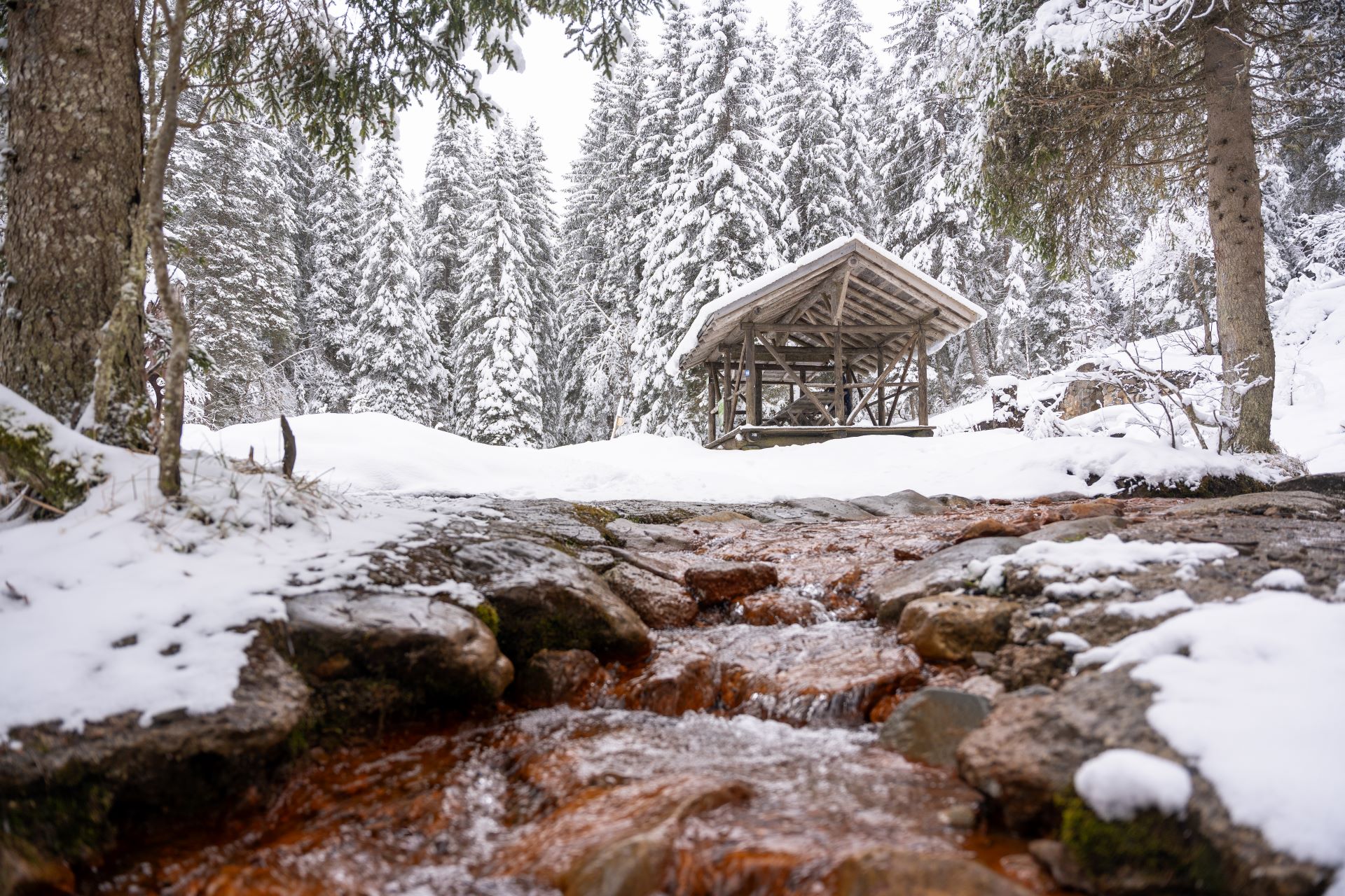 Une douzaine de ponts et de passerelles enjambent sous vos raquettes la rivière de »La Vièze ». Vous passez devant la grotte de l’Eau Rouge, eau ferrugineuse aux bienfaits reconnus, morceau d’histoire du tourisme morginois qui se laisse encore déguster aujourd’hui…