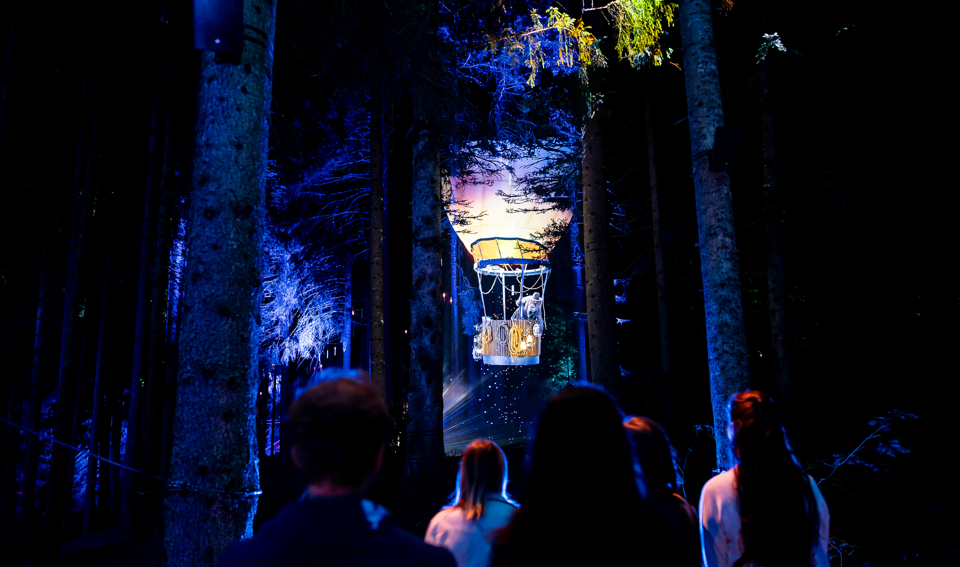 Au cœur des Alpes françaises, dans le village des Gets, vous êtes invités à partir sur les traces d’un colporteur de musique et de sa montgolfière, et à suivre son incroyable voyage par-delà les montagnes.