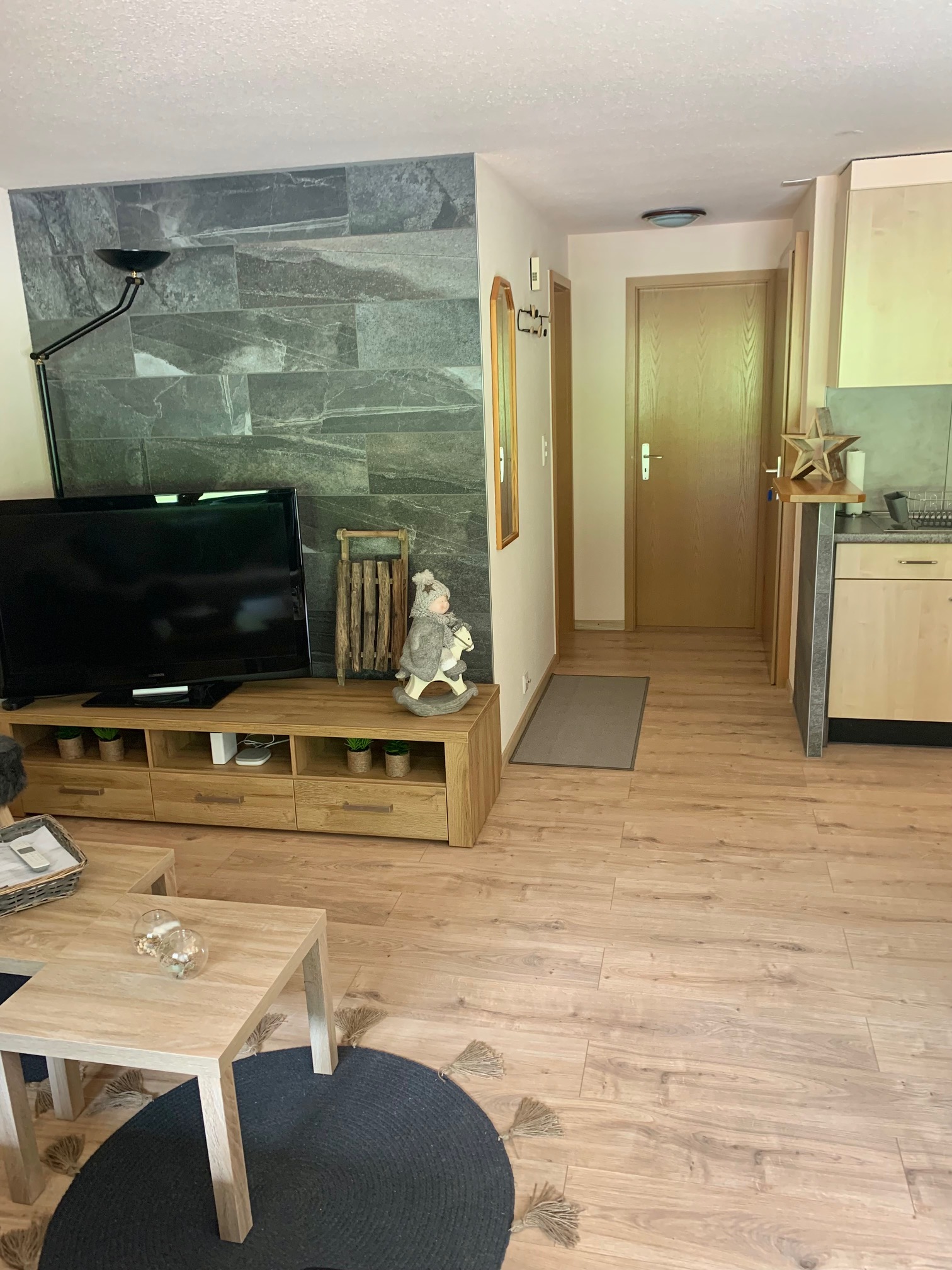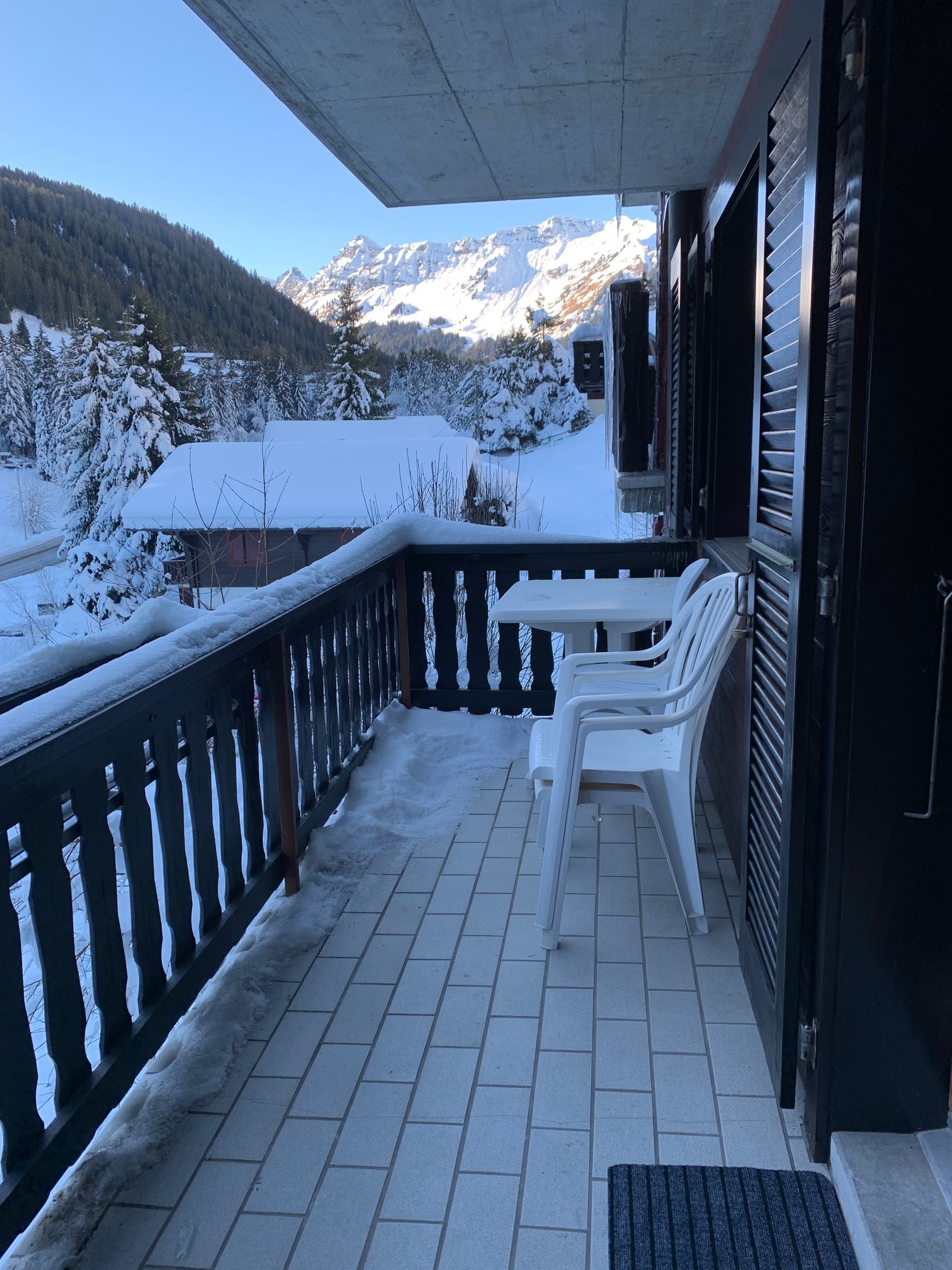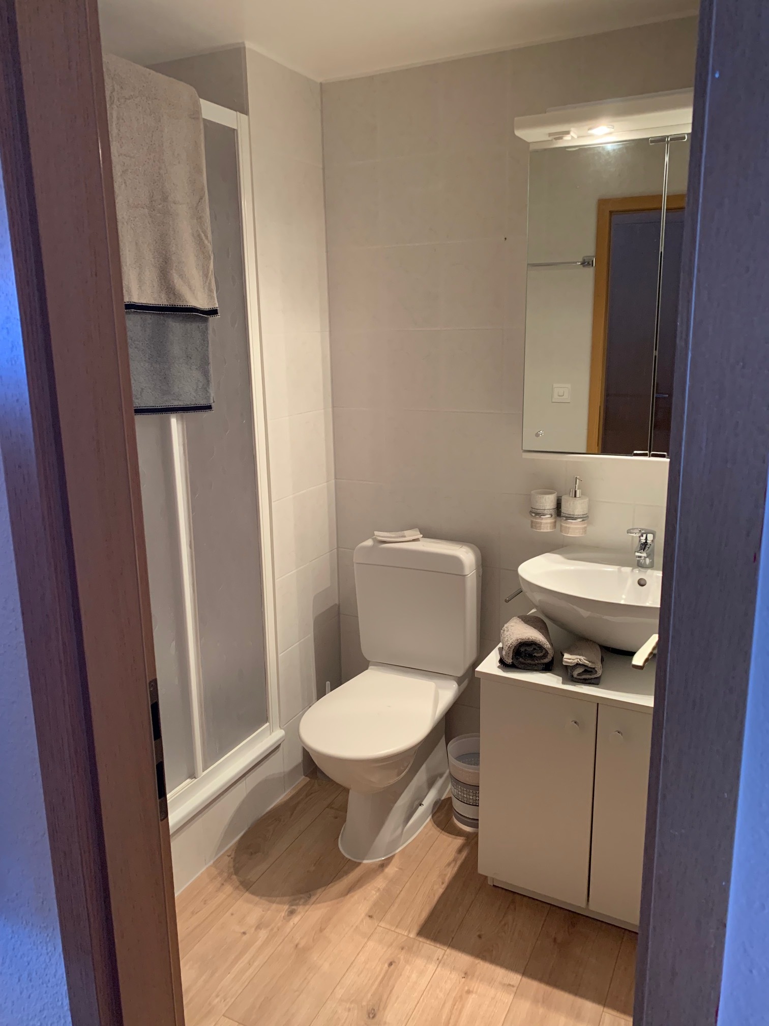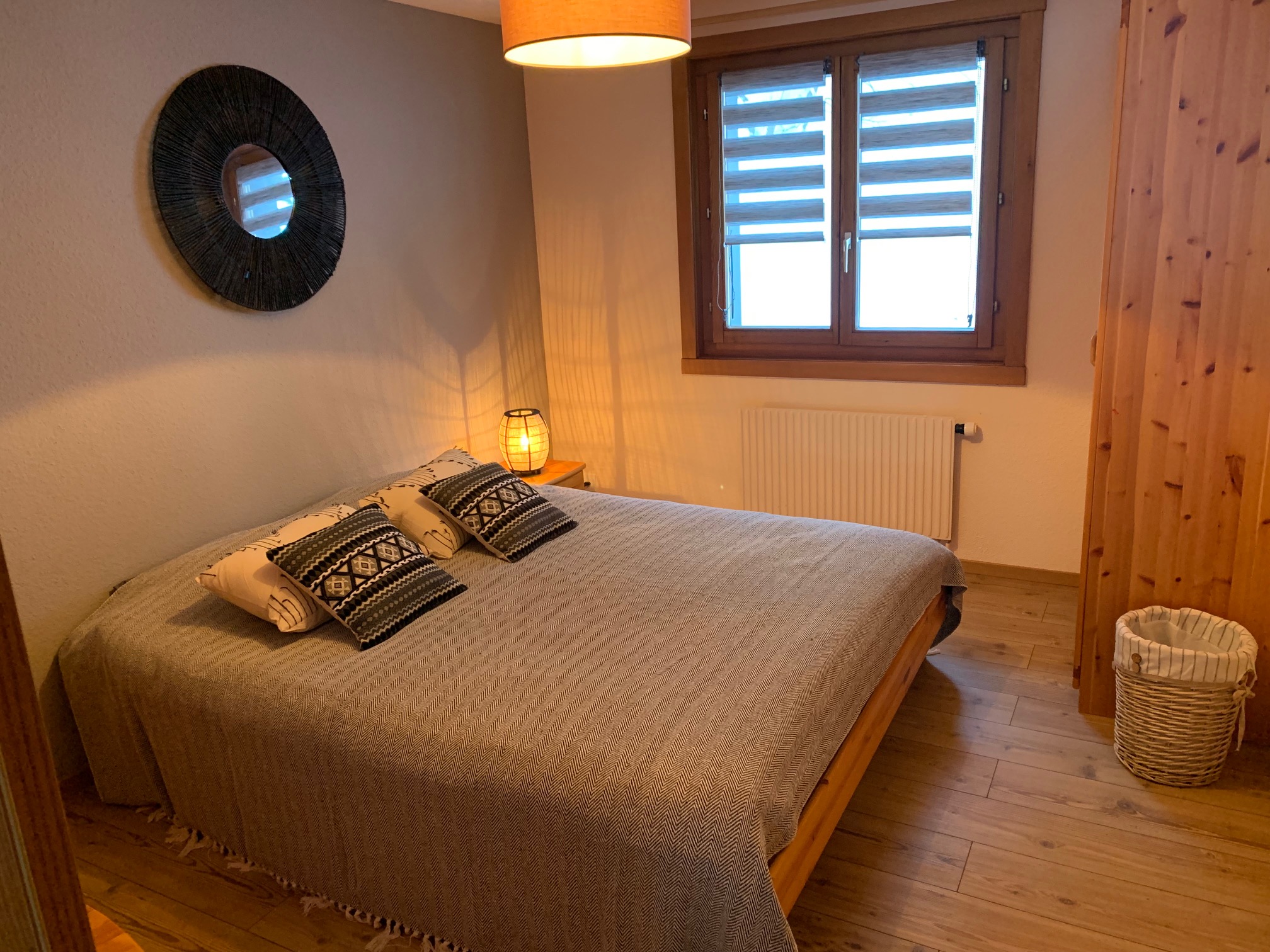 Appartement 2.5 pièces de 51m2 (balcon de 9m2) situé au 1er étage, comprenant: une entrée, séjour avec canapé-lit 2 places (160x200cm), TV câblée, Wifi, cuisine ouverte avec 4 plaques de cuisson, four, micro-onde, machine à café « Delizio », caquelon à fondue, grille-pain, bouilloire électrique, table avec 6 chaises. Accès sur le balcon avec 1 table et 6 chaises. 1 chambre à coucher avec 1 lit double (160x200cm), 1 armoire, 1 salle de bain avec douche/lavabo et WC. 1 place de parc.
