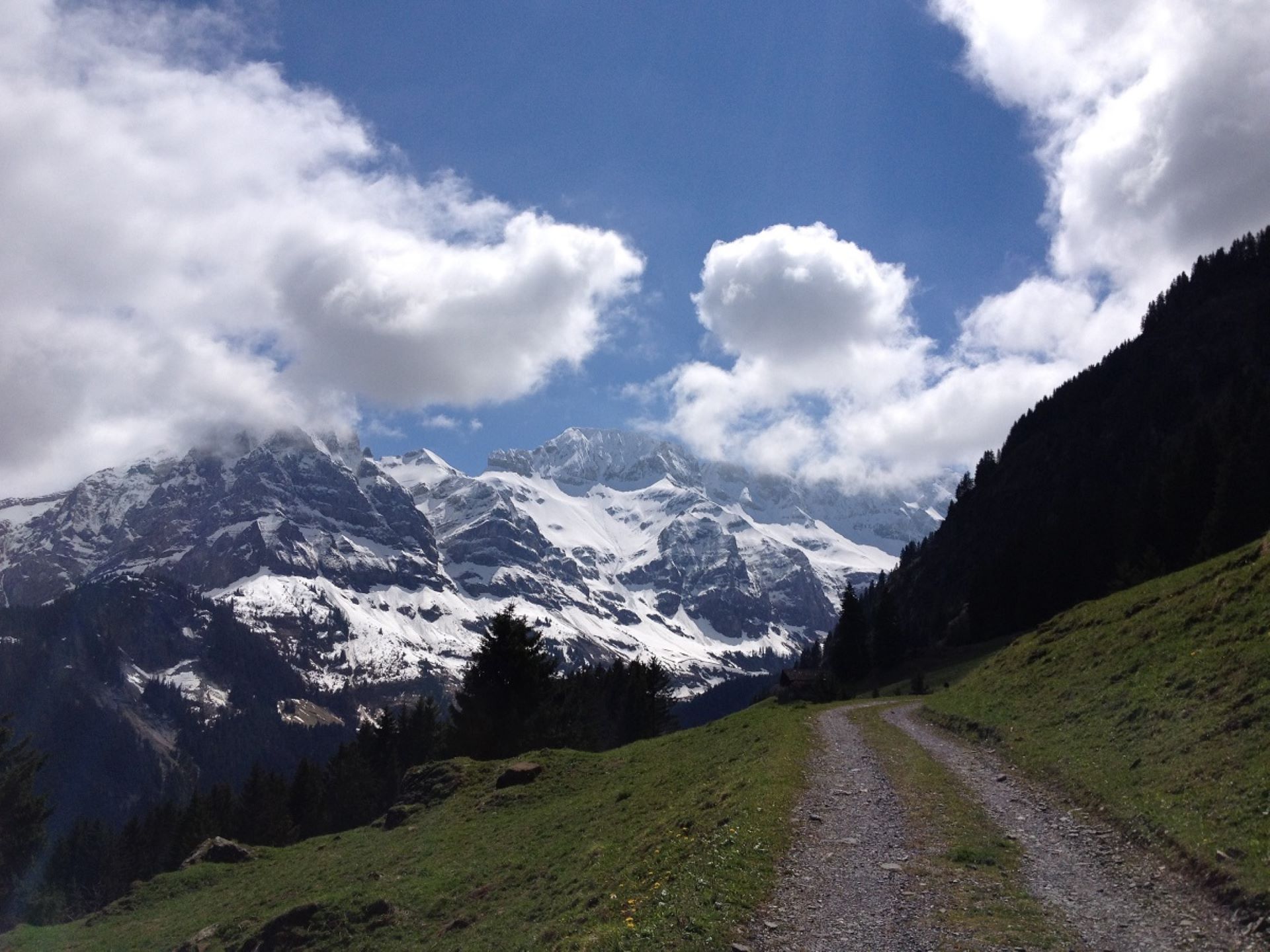 Depuis le restaurant Cantine Sur Coux, continuez vers le sud-ouest sur la route goudronnée en direction des Dents Blanches et du pylône à mi-parcours du téléphérique. La route devient rapidement un chemin de gravier puis un sentier pédestre, dammé en hiver. Faites demi-tour à la vue du panneau d’avertissement du danger d’avalanche et revenez par le même chemin. .