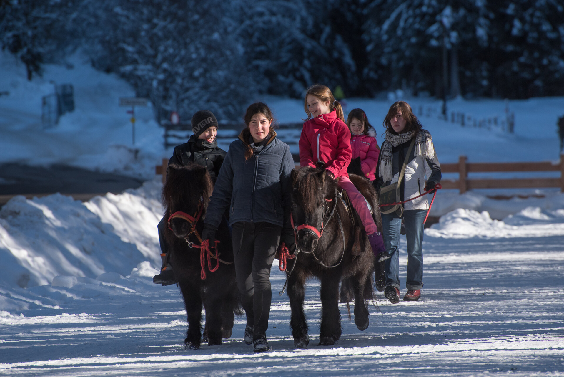 – en cas de mauvaises conditions météorologiques, il existe la possibilité de faire un parcours ludique avec les poneys à l’intérieur du ranch.