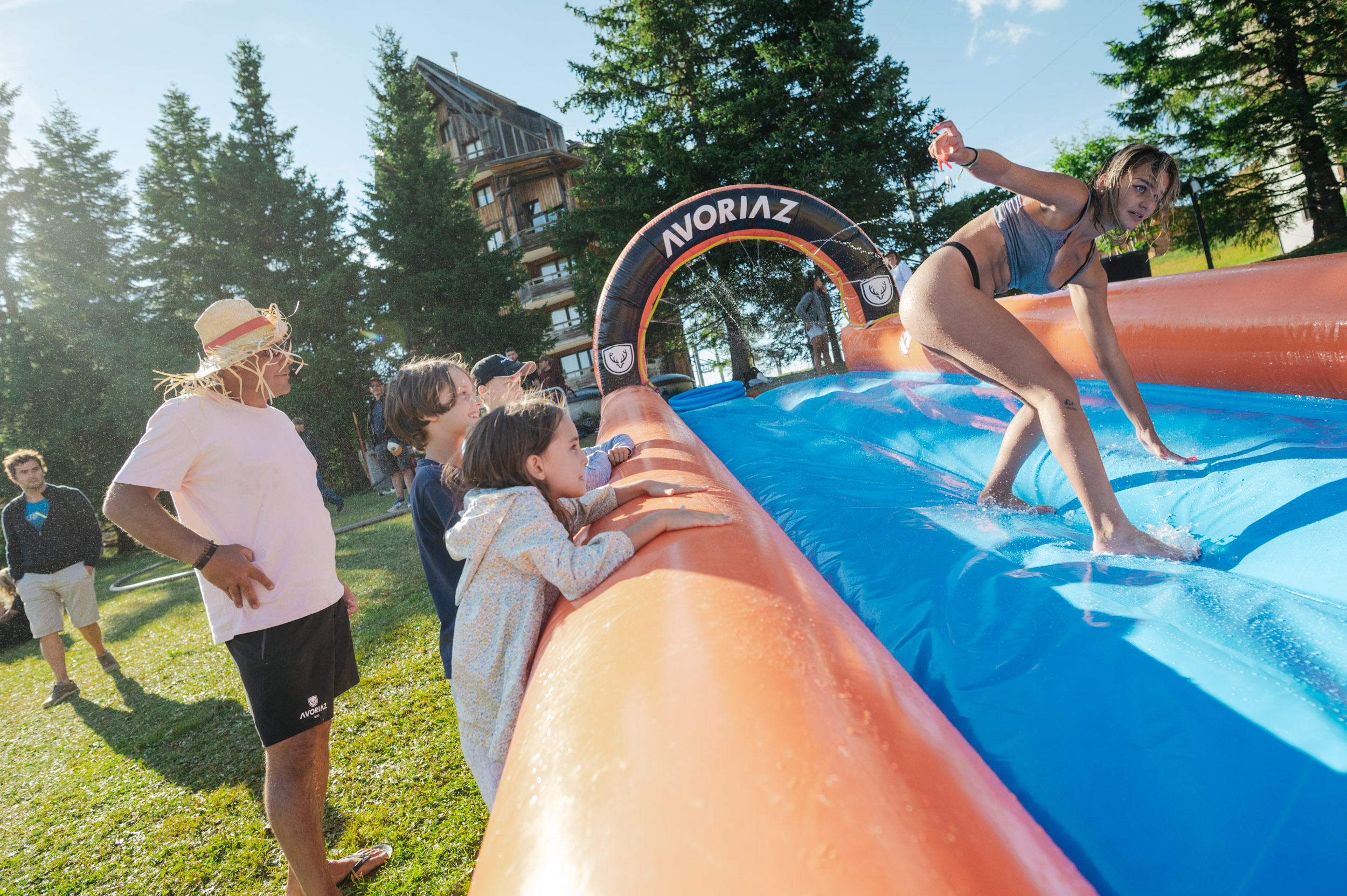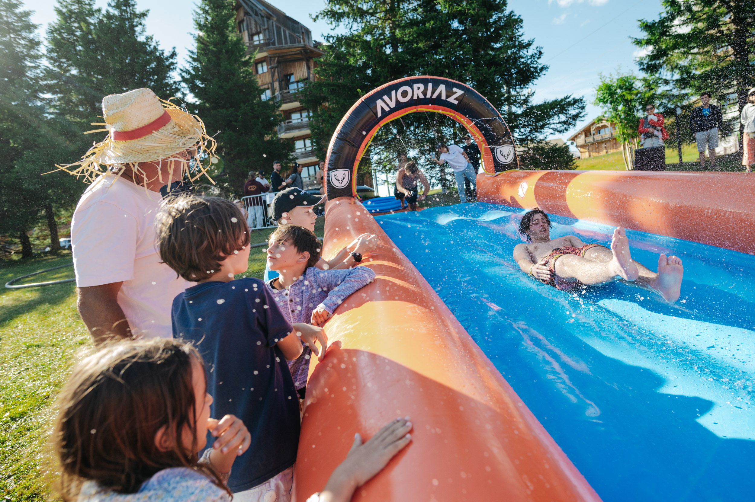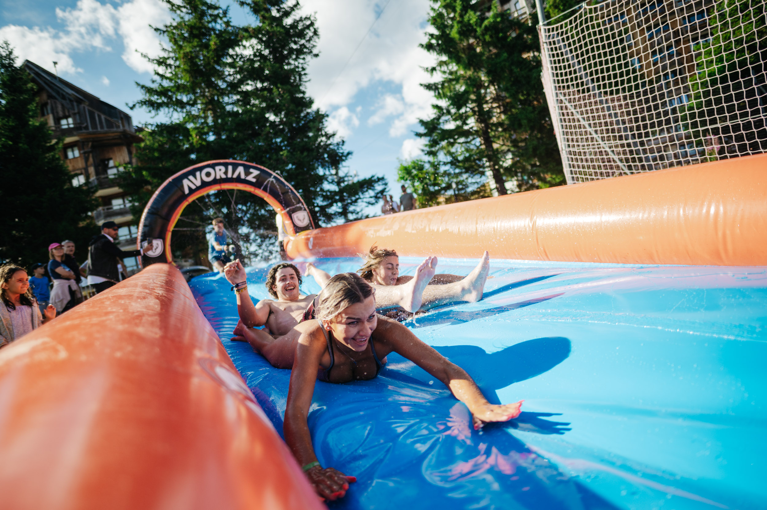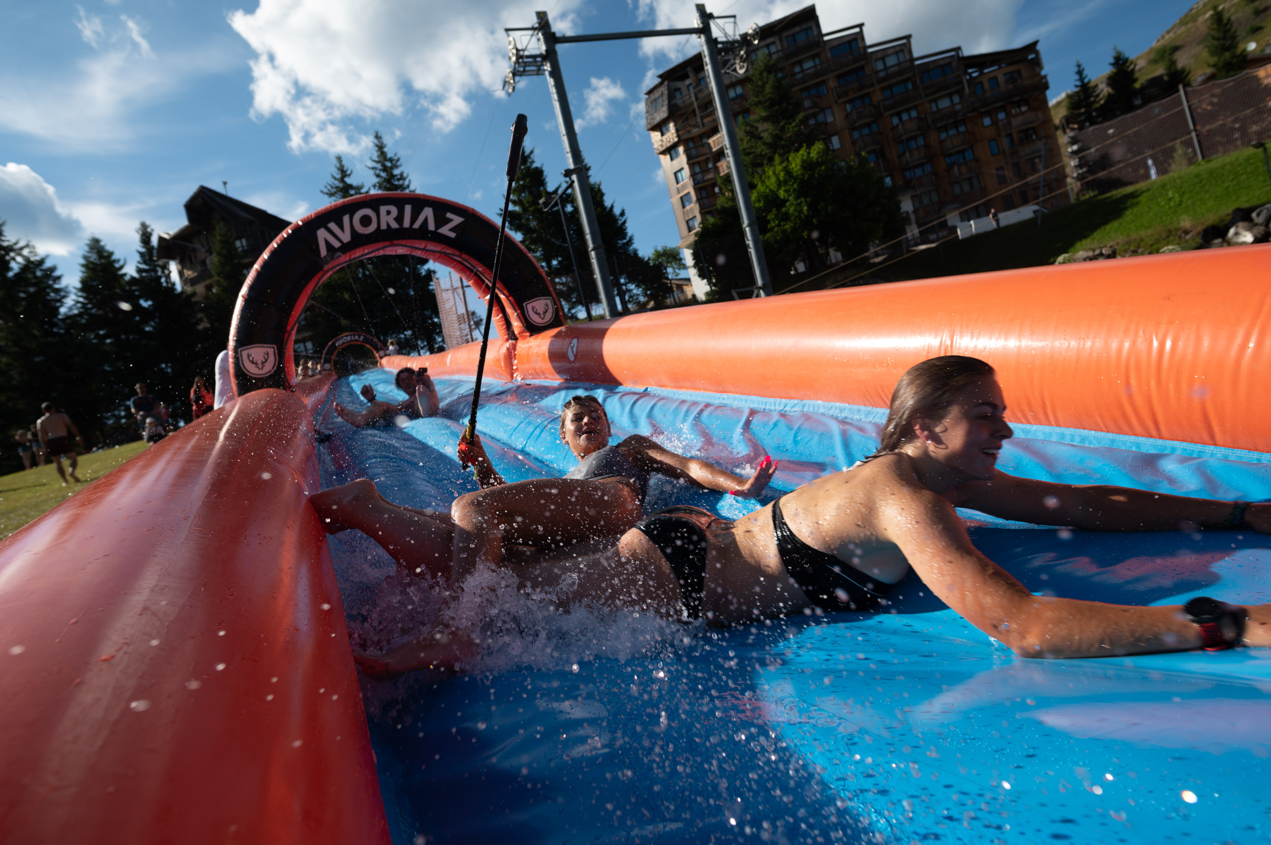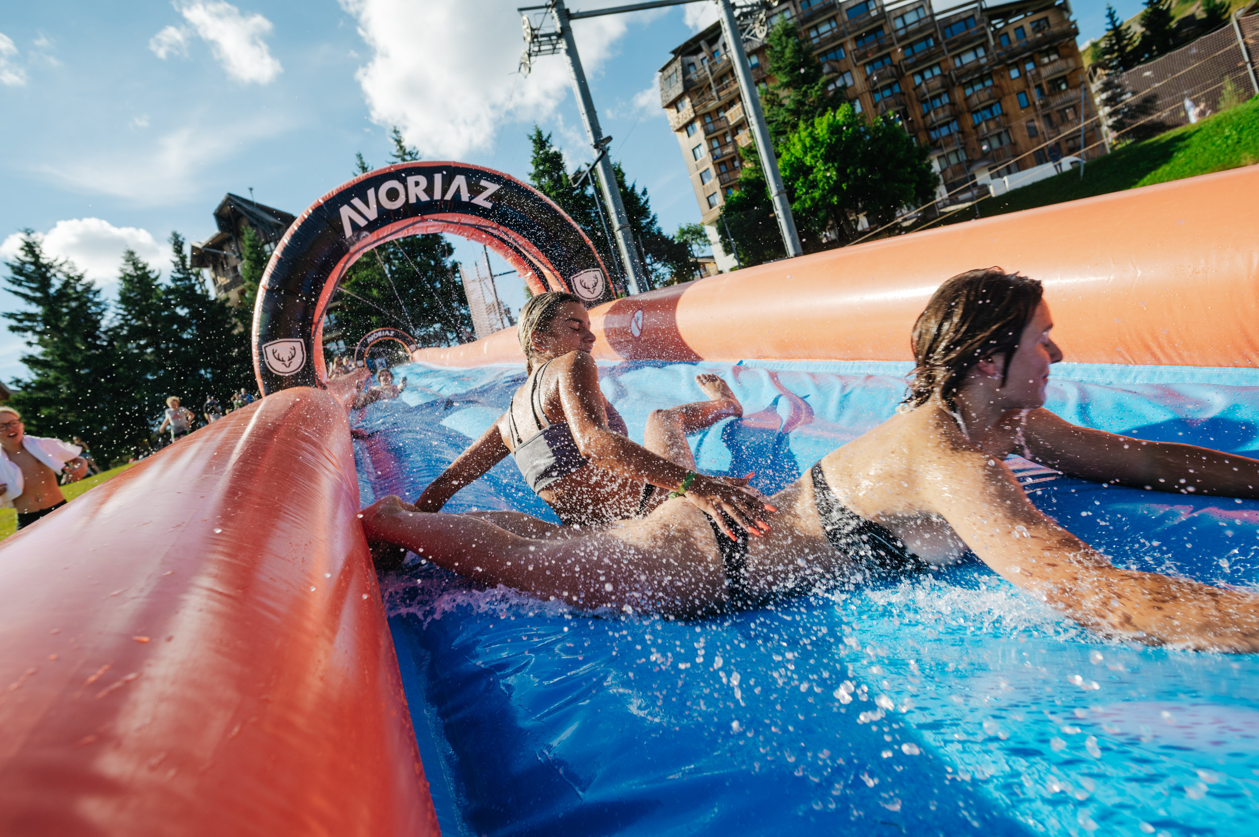 Lancez-vous dans un ventriglisse gonflable de 60 mètres depuis le haut de la piste des dromonts. Rafraîchissement garanti !