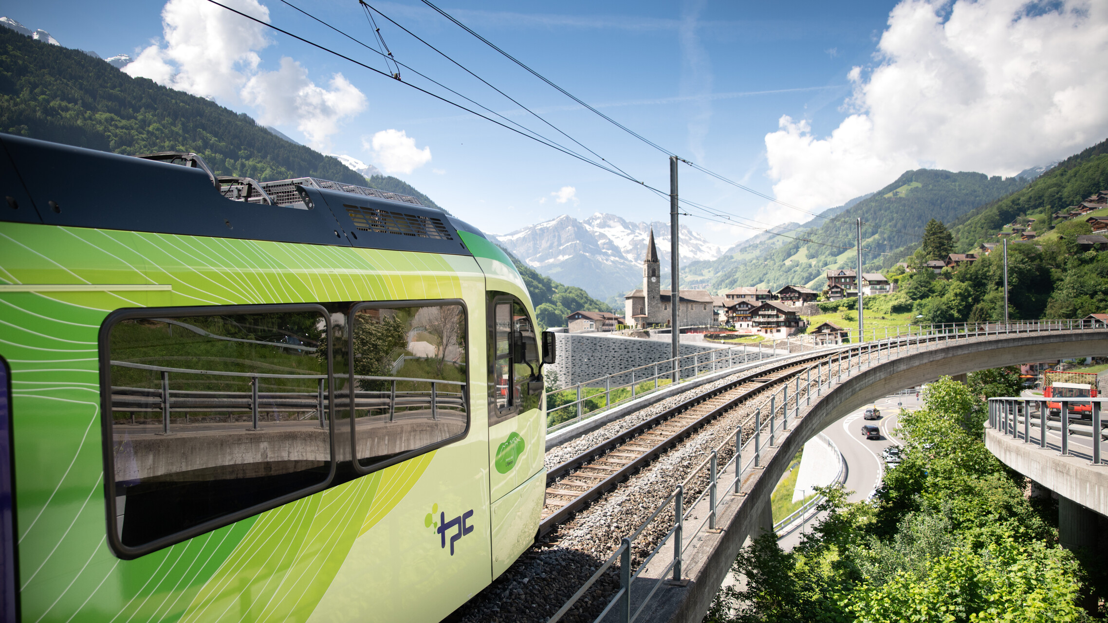 Arrêt au centre du village de la ligne de train reliant Aigle - Monthey - Champéry.