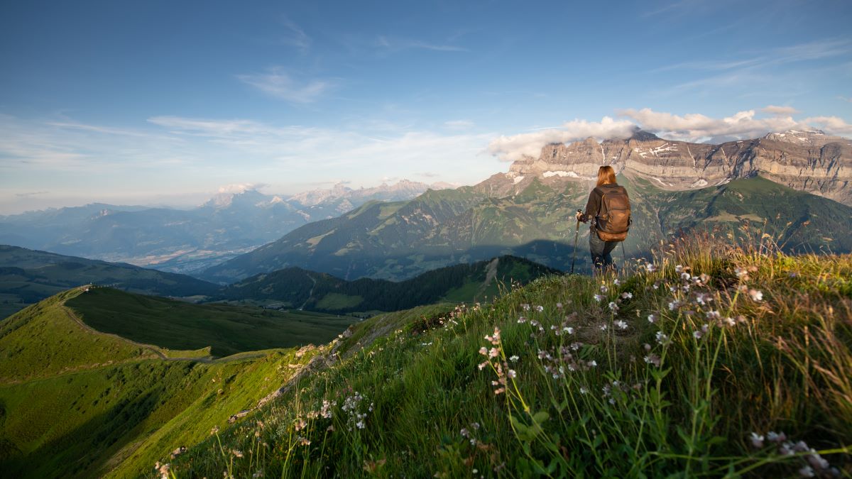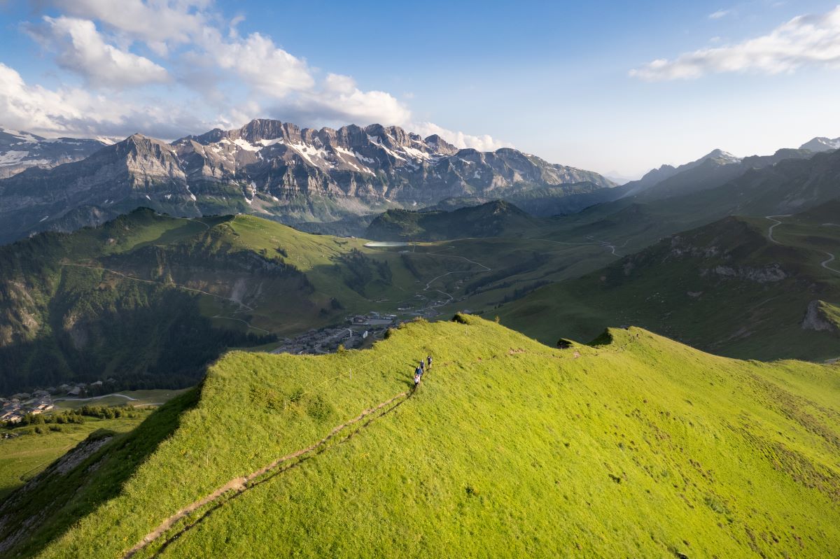 Profitez d’une pause pique-nique méritée face aux Dents du Midi, aux Dents Blanches à droite et aux Alpes vaudoises à gauche. Puis redescendez la crête par un sentier qui rejoint le Col Portes du Soleil à 1950m, point emblématique du domaine des Portes du Soleil.