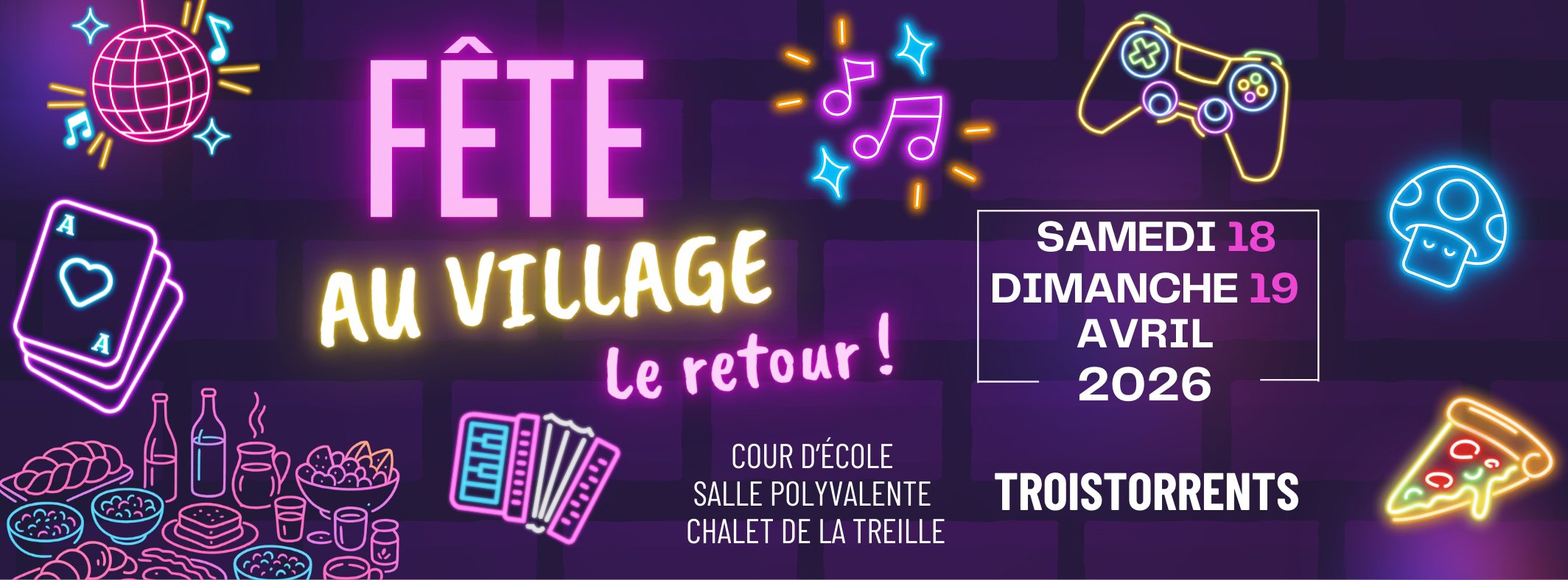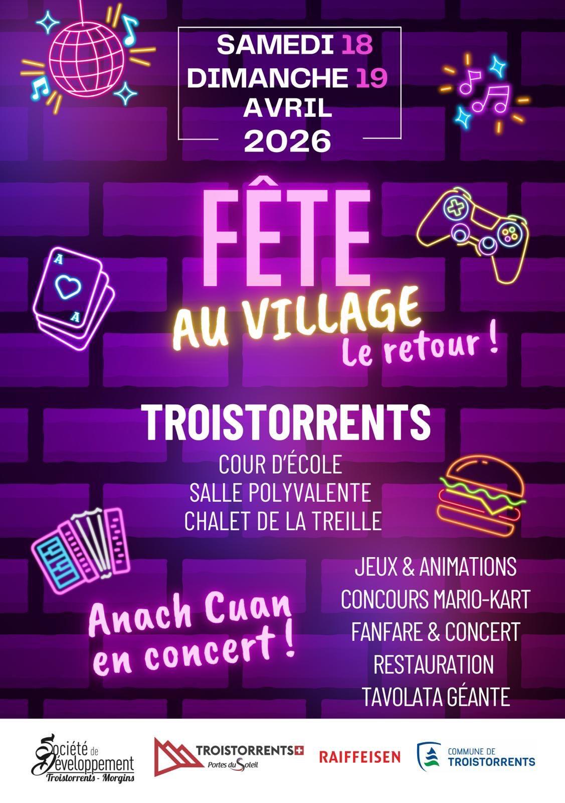 Après tant d’années d’attente, la fête du village fait enfin son grand retour à Troistorrents ! Les 18 et 19 avril 2026… et on vous promet de belles surprises.