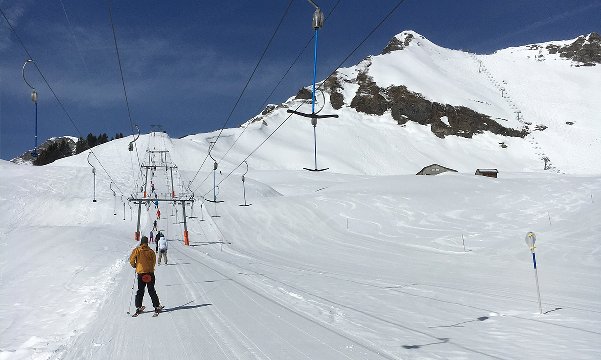 Le départ de la piste se fait à la pointe de Ripaille, accessible via le double téléski / arbalète.