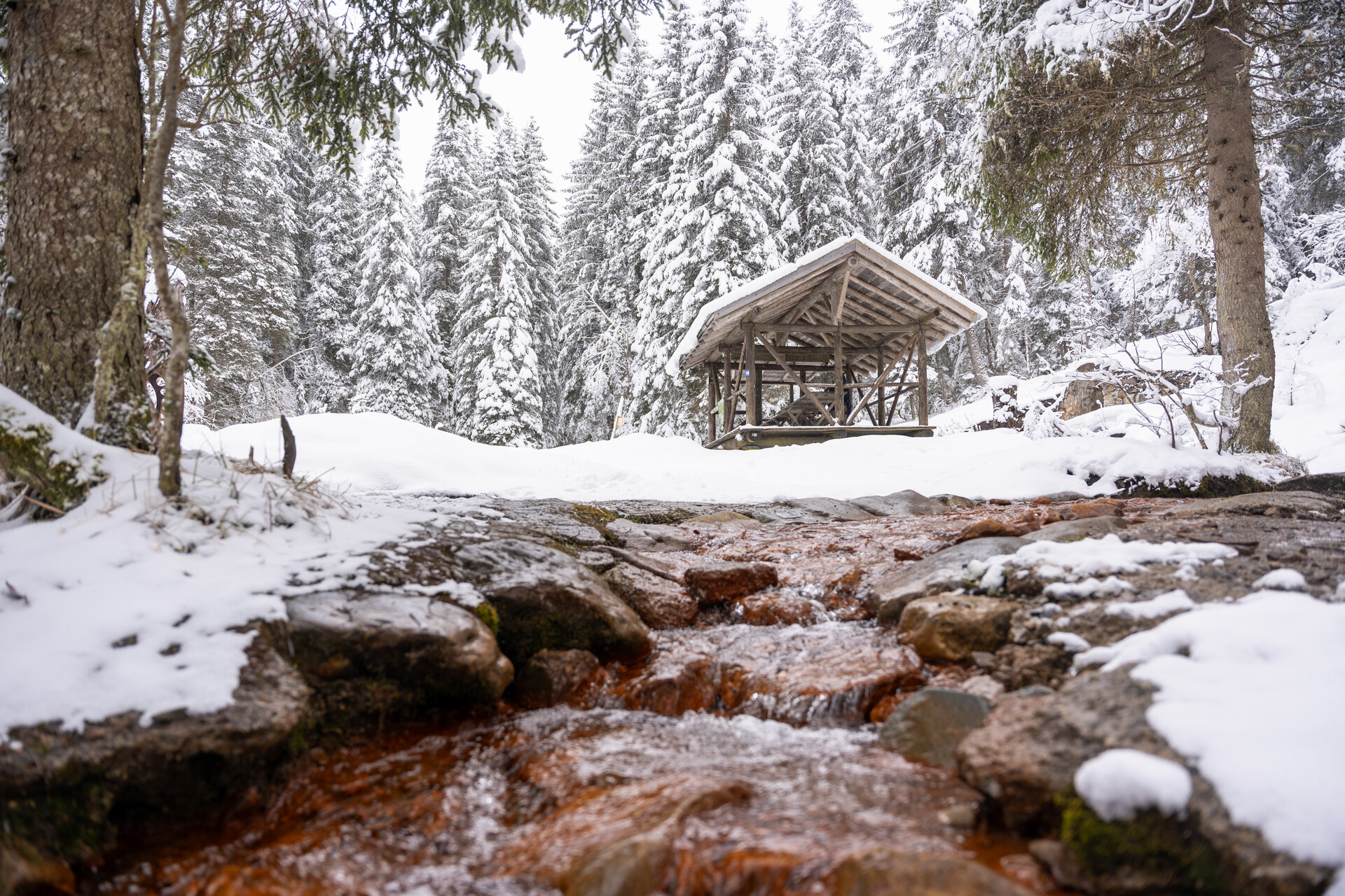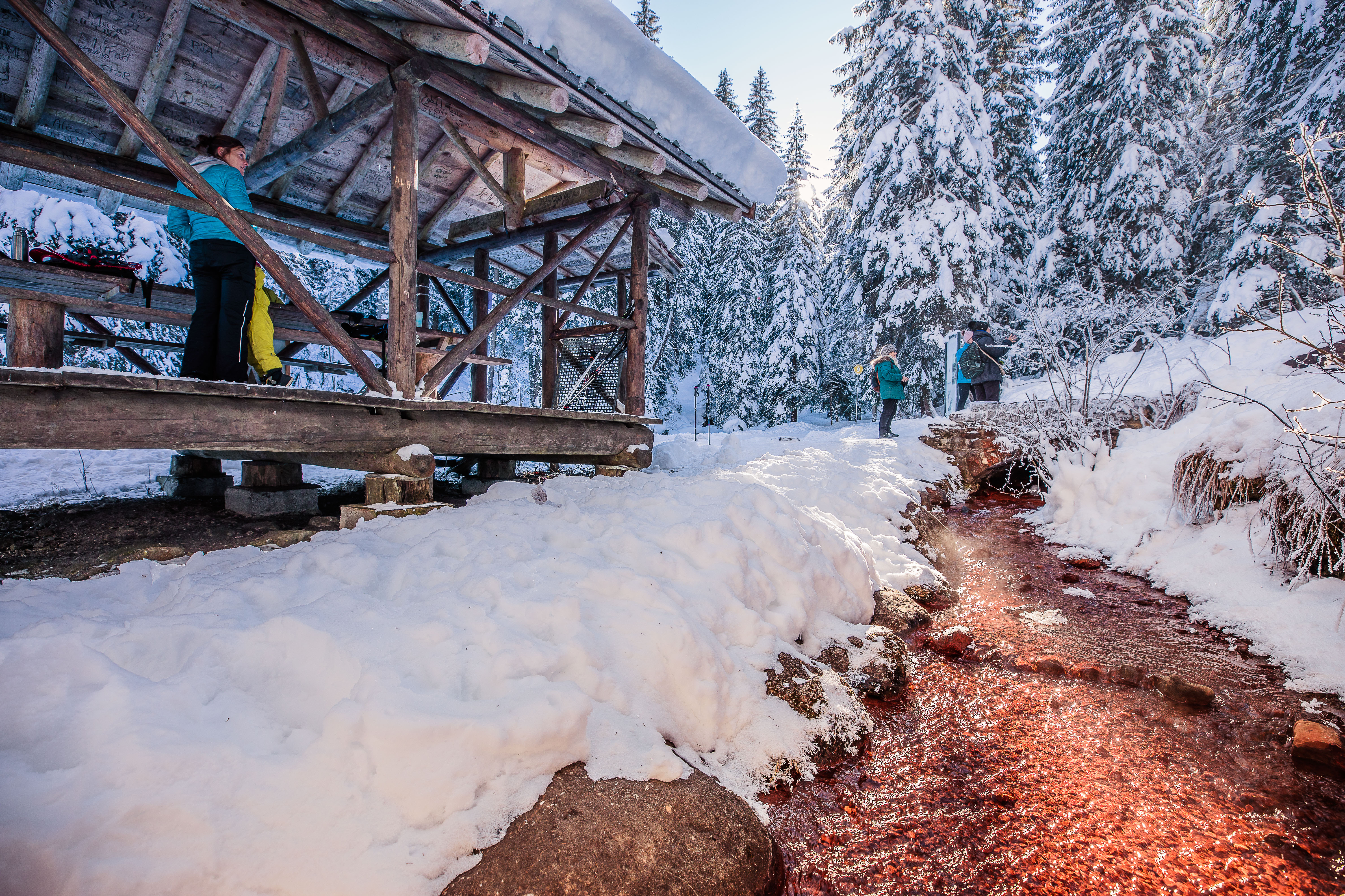 La source d’eau ferrugineuse de Morgins, connue sous le nom d’Eau Rouge, colore les cailloux de la Vièze de magnifiques teintes rouge-ocre qui intriguent toujours les promeneurs.